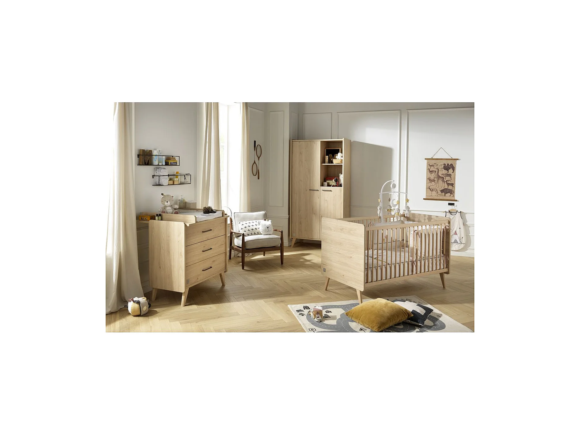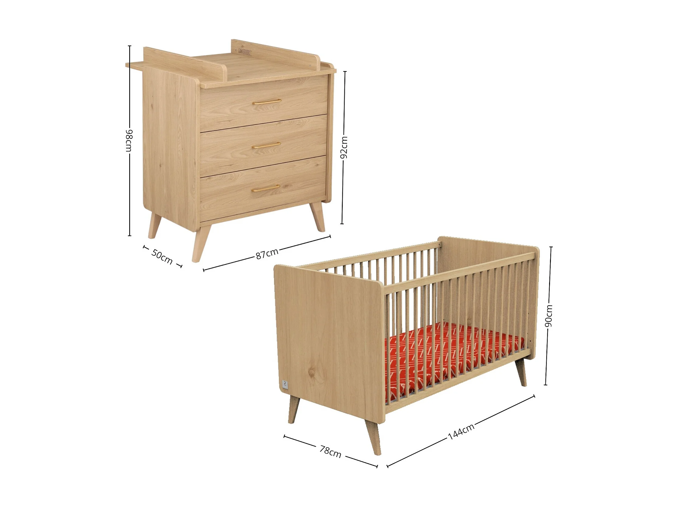 Arty Cuna Convertible, Cama 140x70cm y Mueble Cambiador - Roble Suave