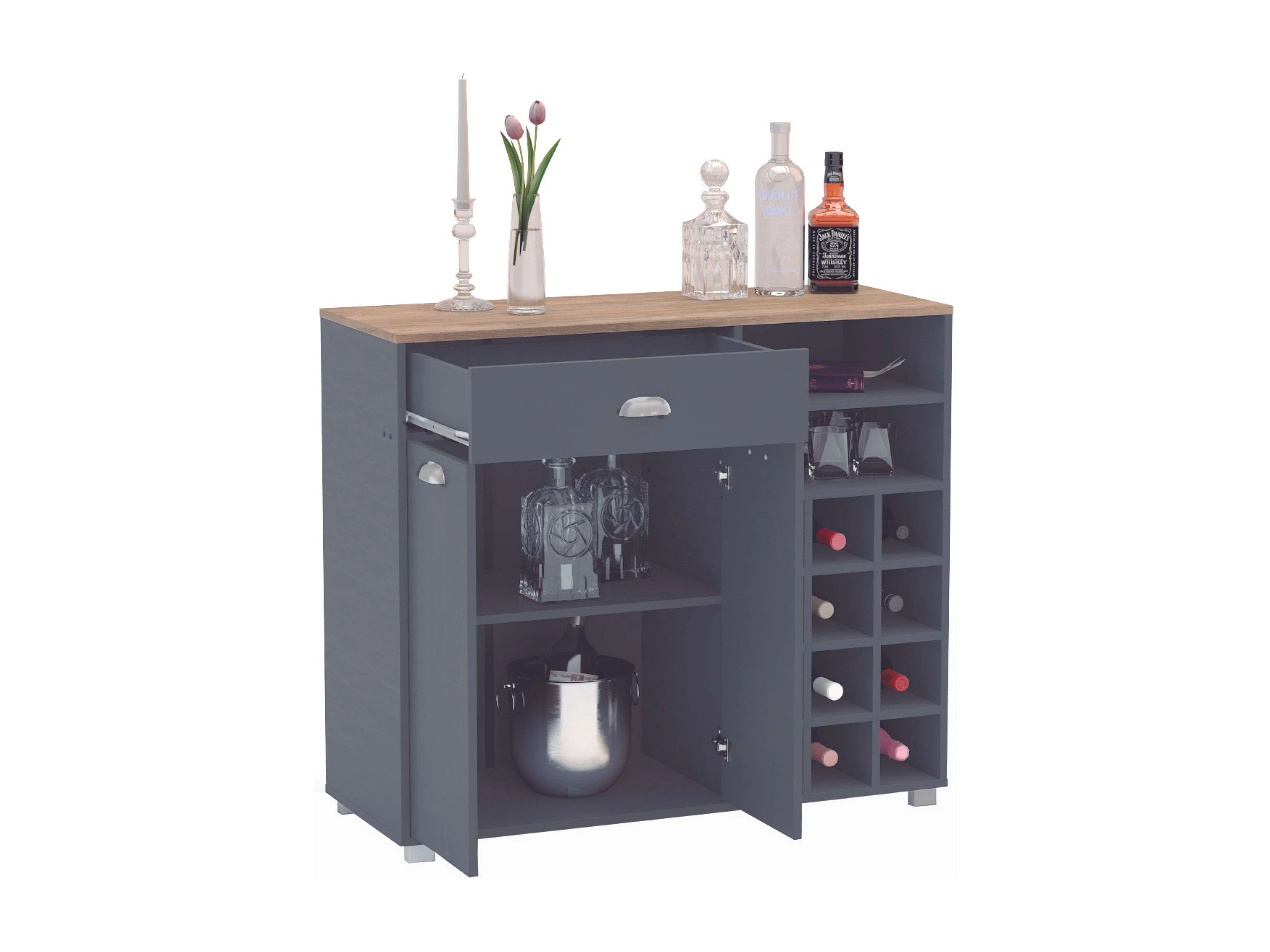 Asfeld Buffet Cocina Botellero Gris Grafito Almacenaje 90x103x40 cm