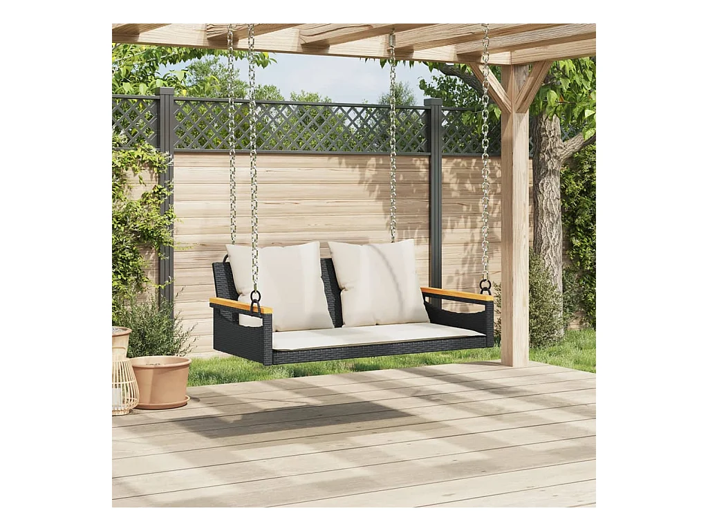Asiento de columpio con cojines negros 63x62x40 cm resina tejida