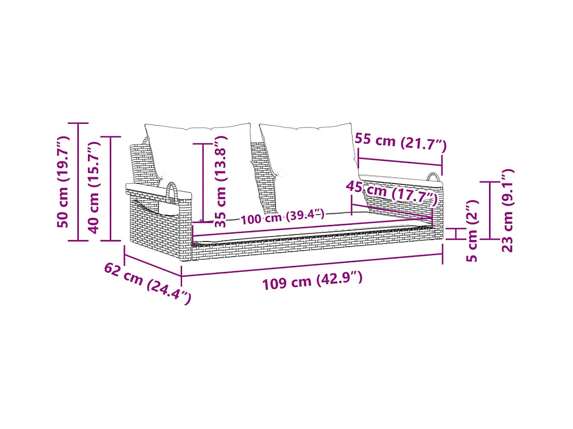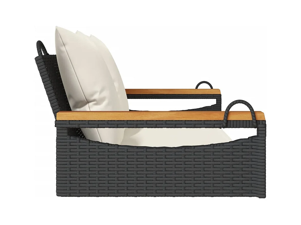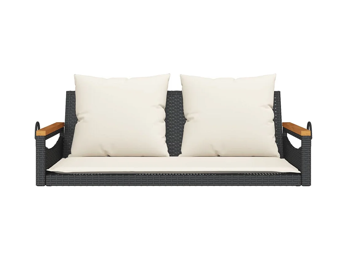 Asiento de columpio con cojines negros 109x62x40 cm resina tejida