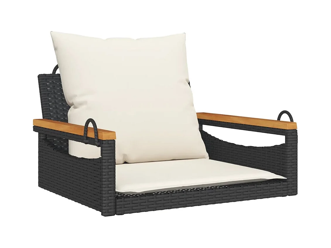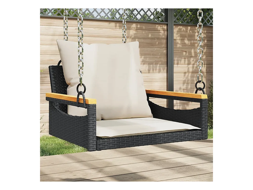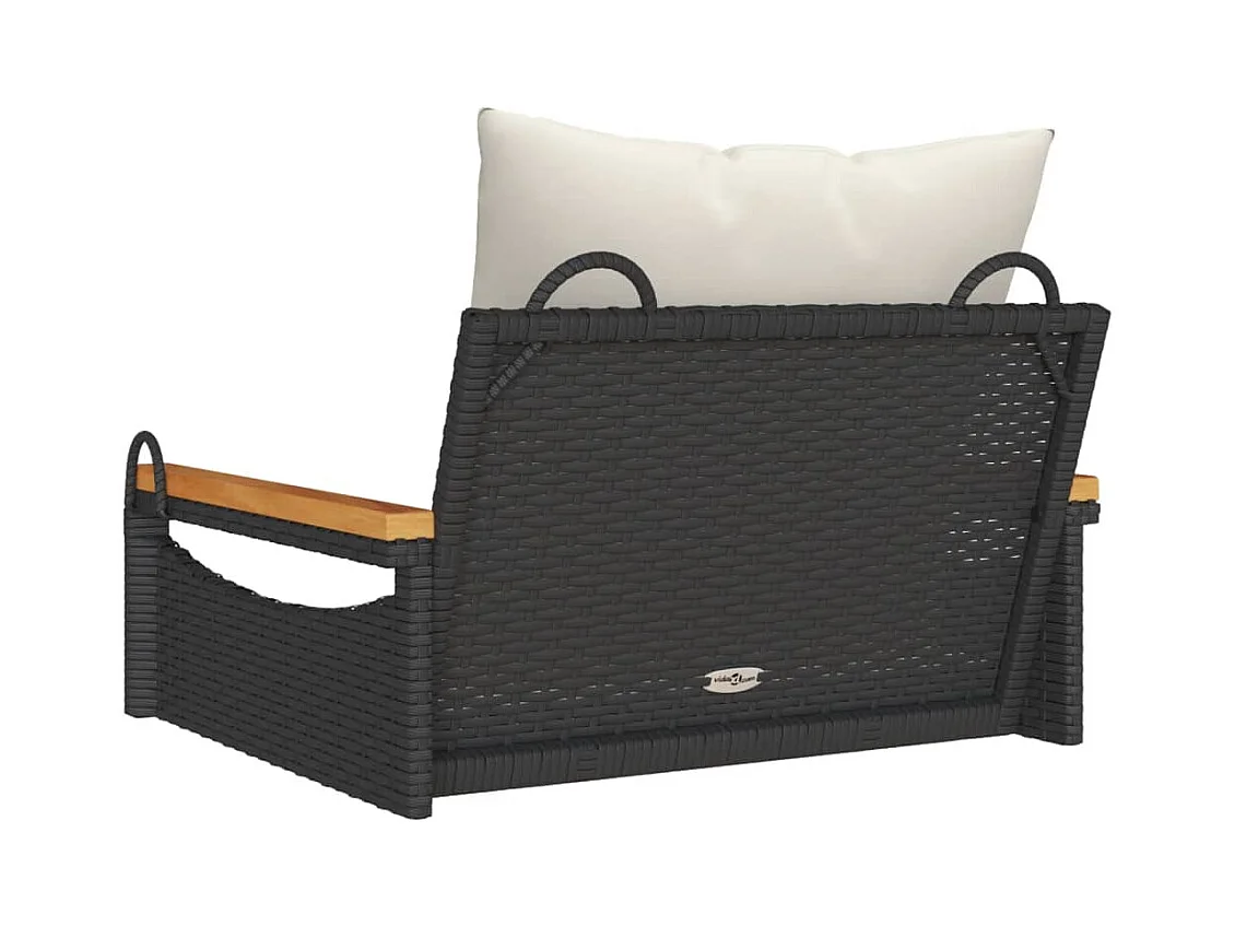Asiento de columpio con cojines negros 63x62x40 cm resina tejida