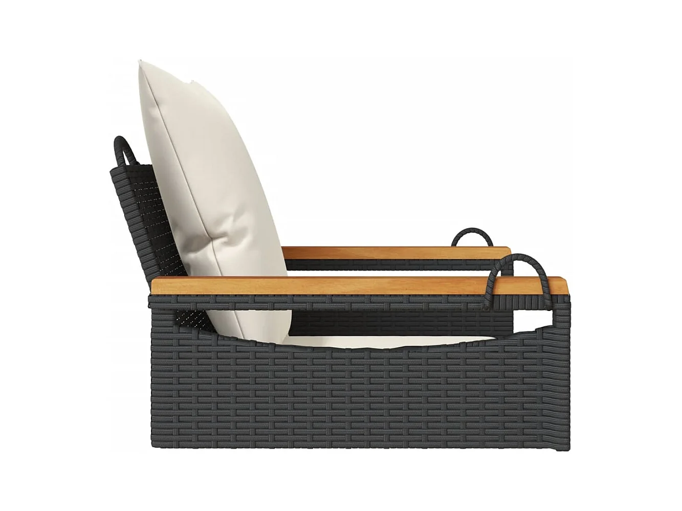 Banco de jardín reclinable y cojines negros 173cm mimbre resina
