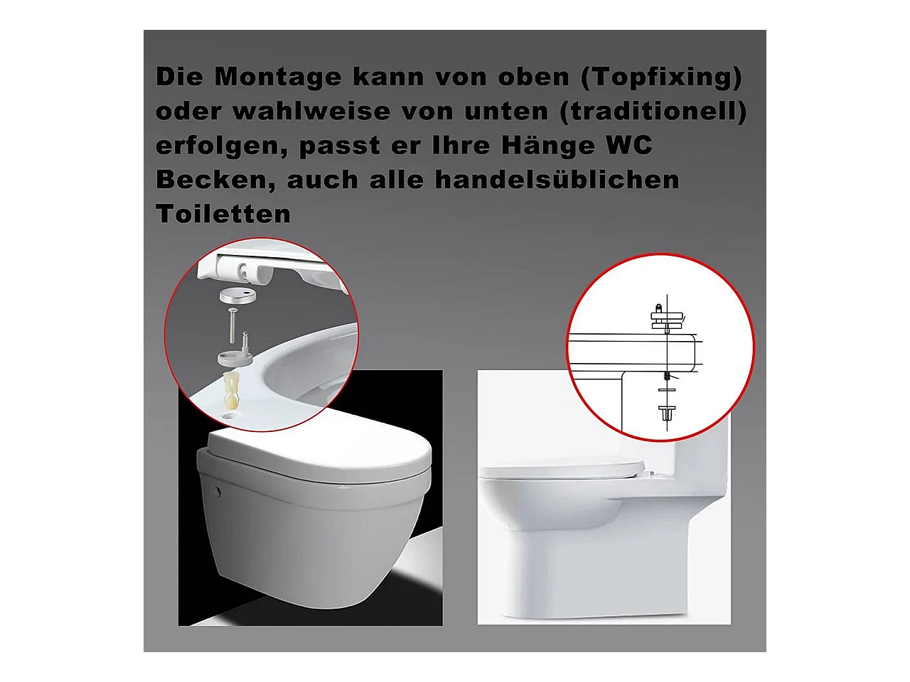 Tapa de inodoro tapa de inodoro de plástico blanco con descenso automático y fijación rápida 19_0000677