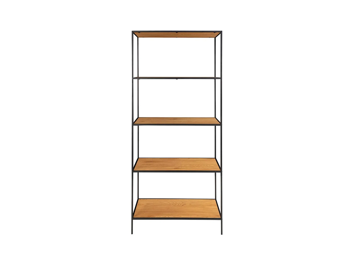 Aspecto de roble de estante de 5 historias con marco negro 80 x 36 x 170 cm
