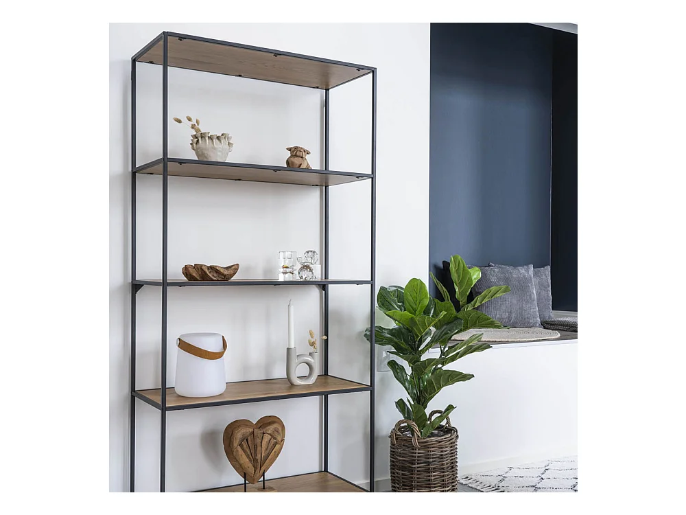 Estantería de Pared Diseño en Metal Madera y Negro - 4 Estantes YOMI