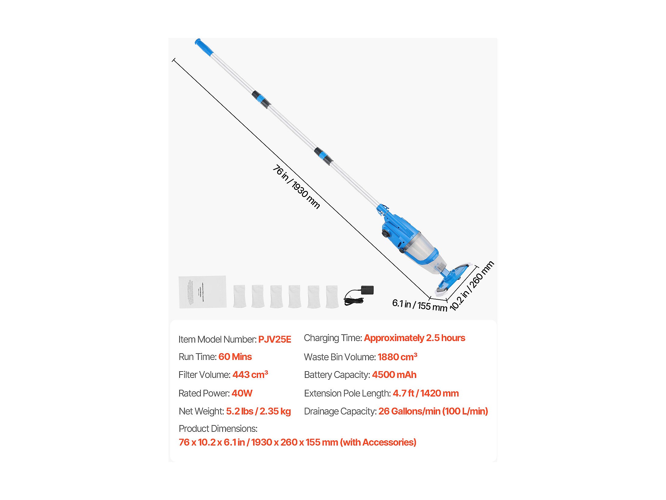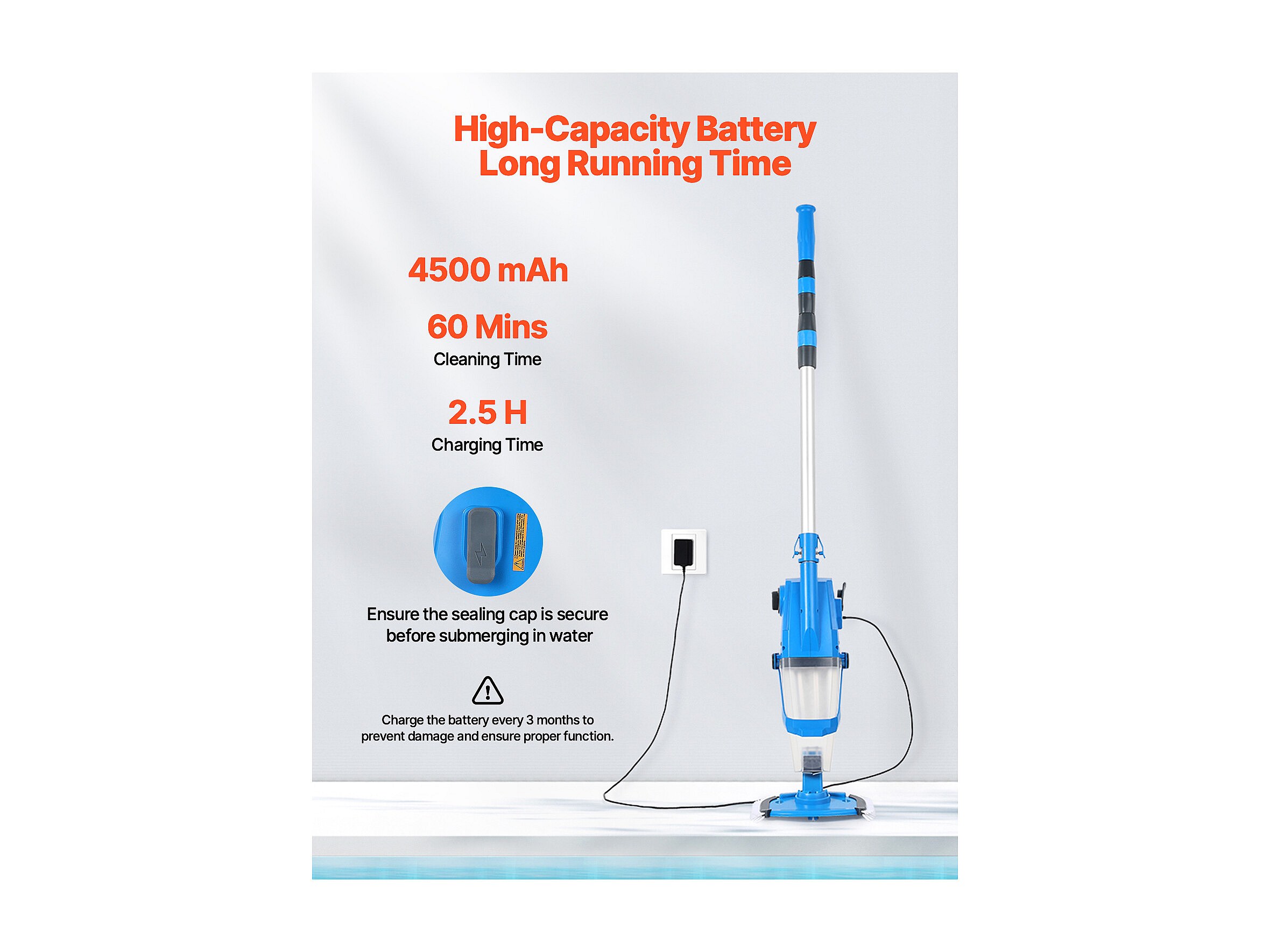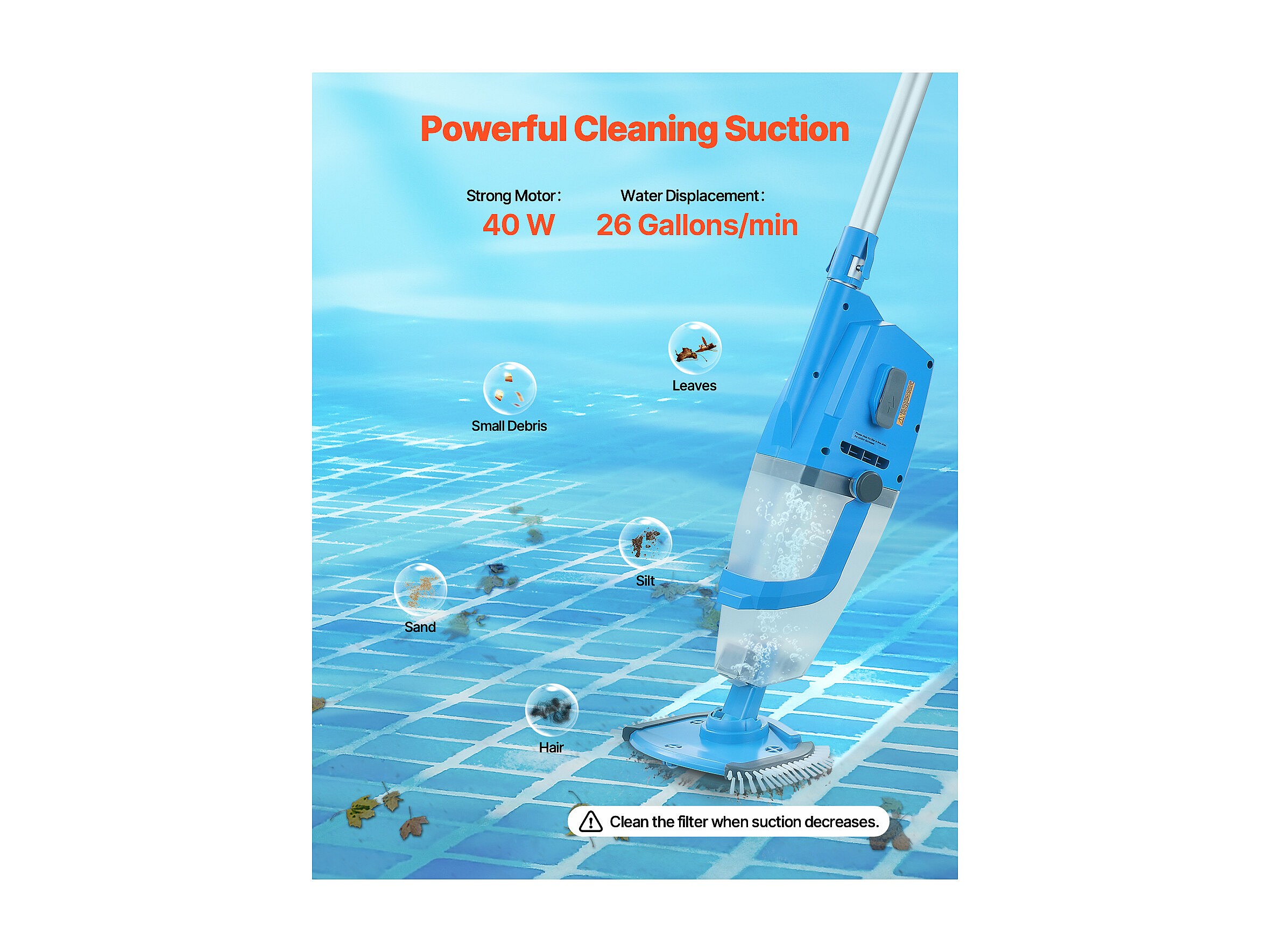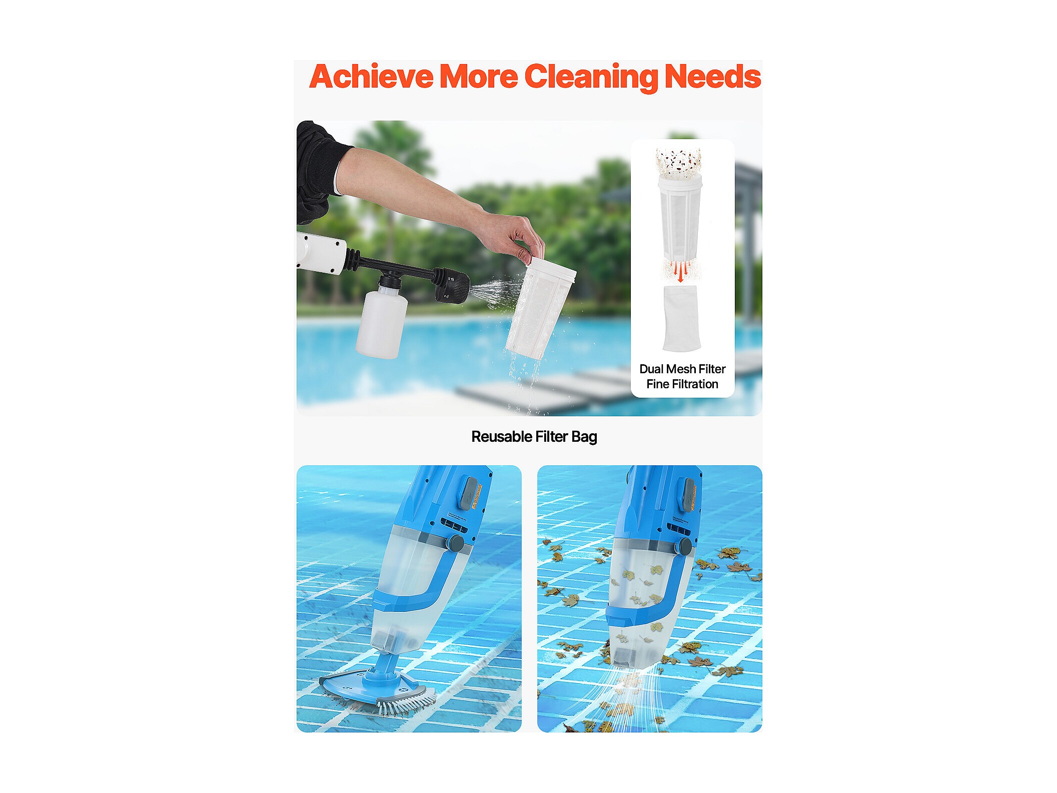 Aspiradora para Piscina Recargable SucceBuy 100 L/min 1 h de Autonomía con Extensión