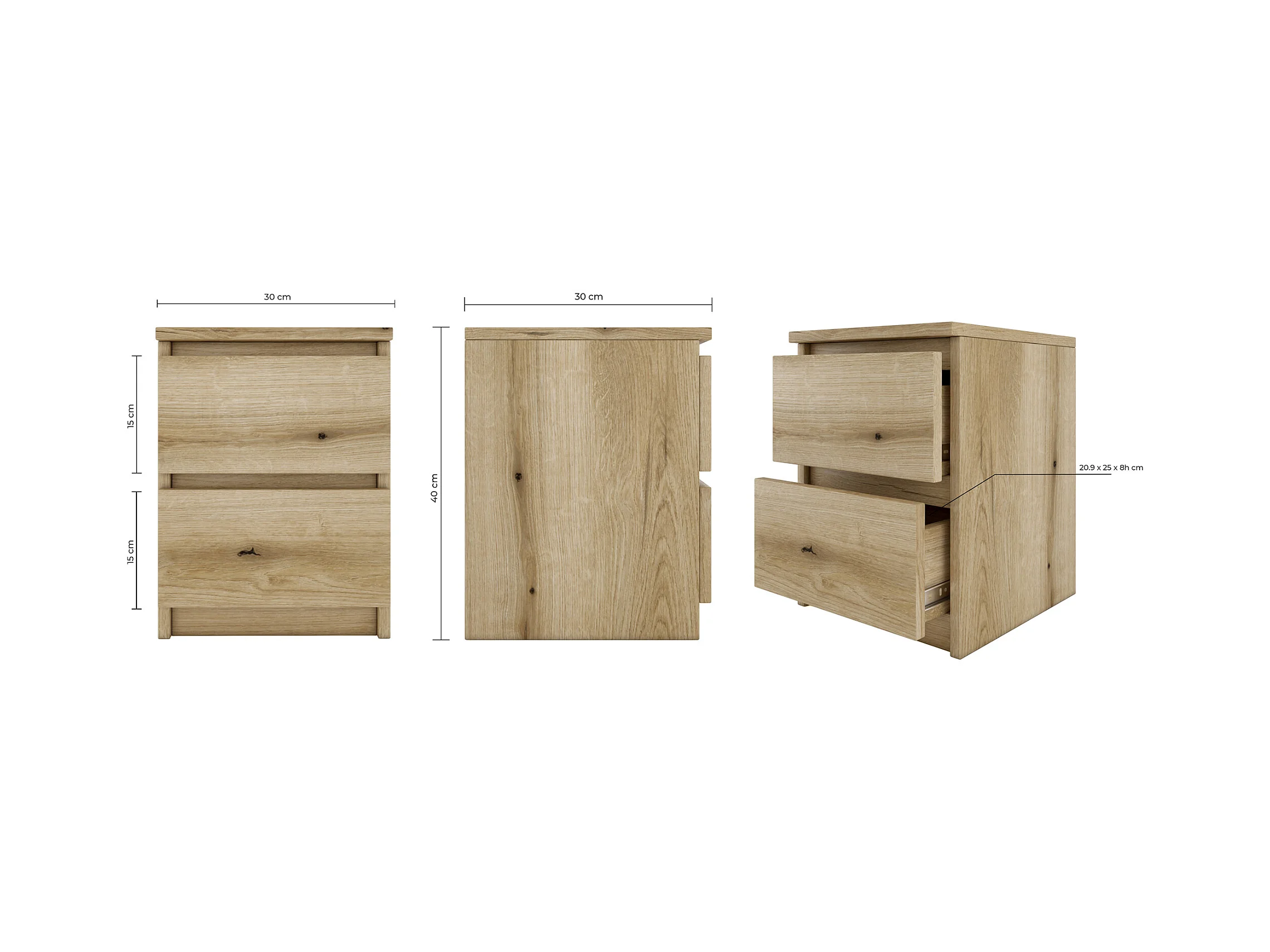 Lote de 2 Mesitas de noche contrachapada color roble 40x30x30 cm ES45644