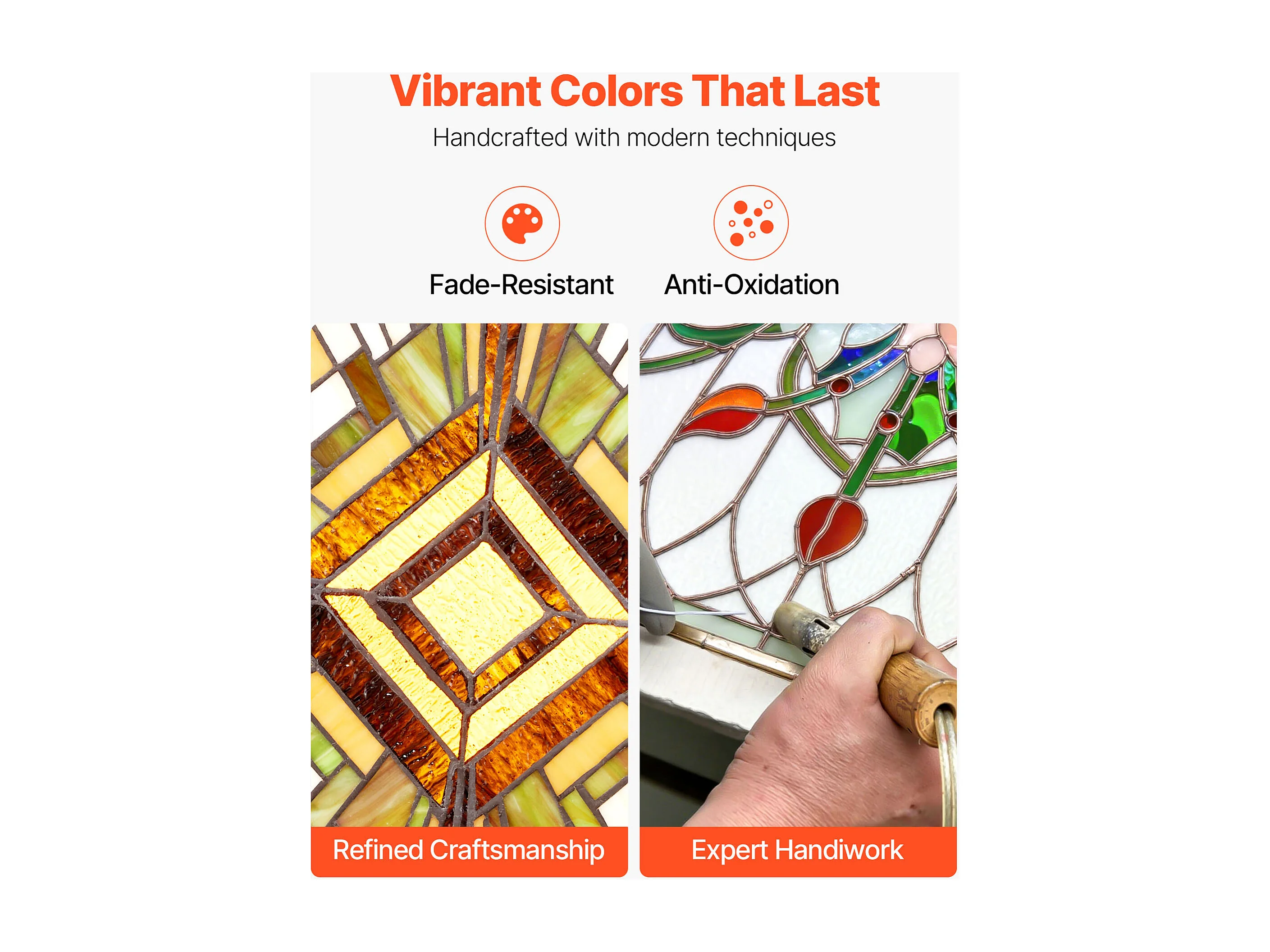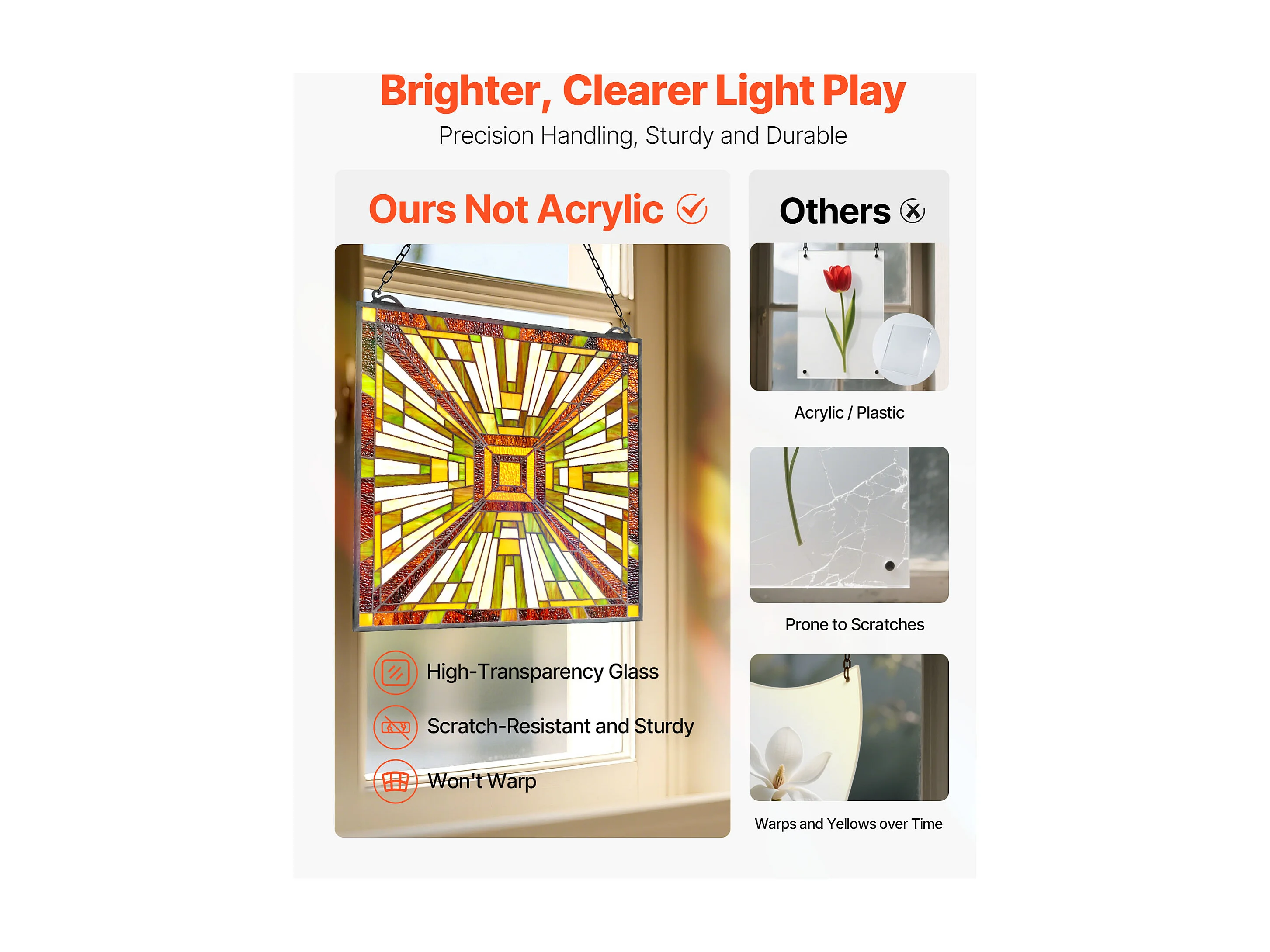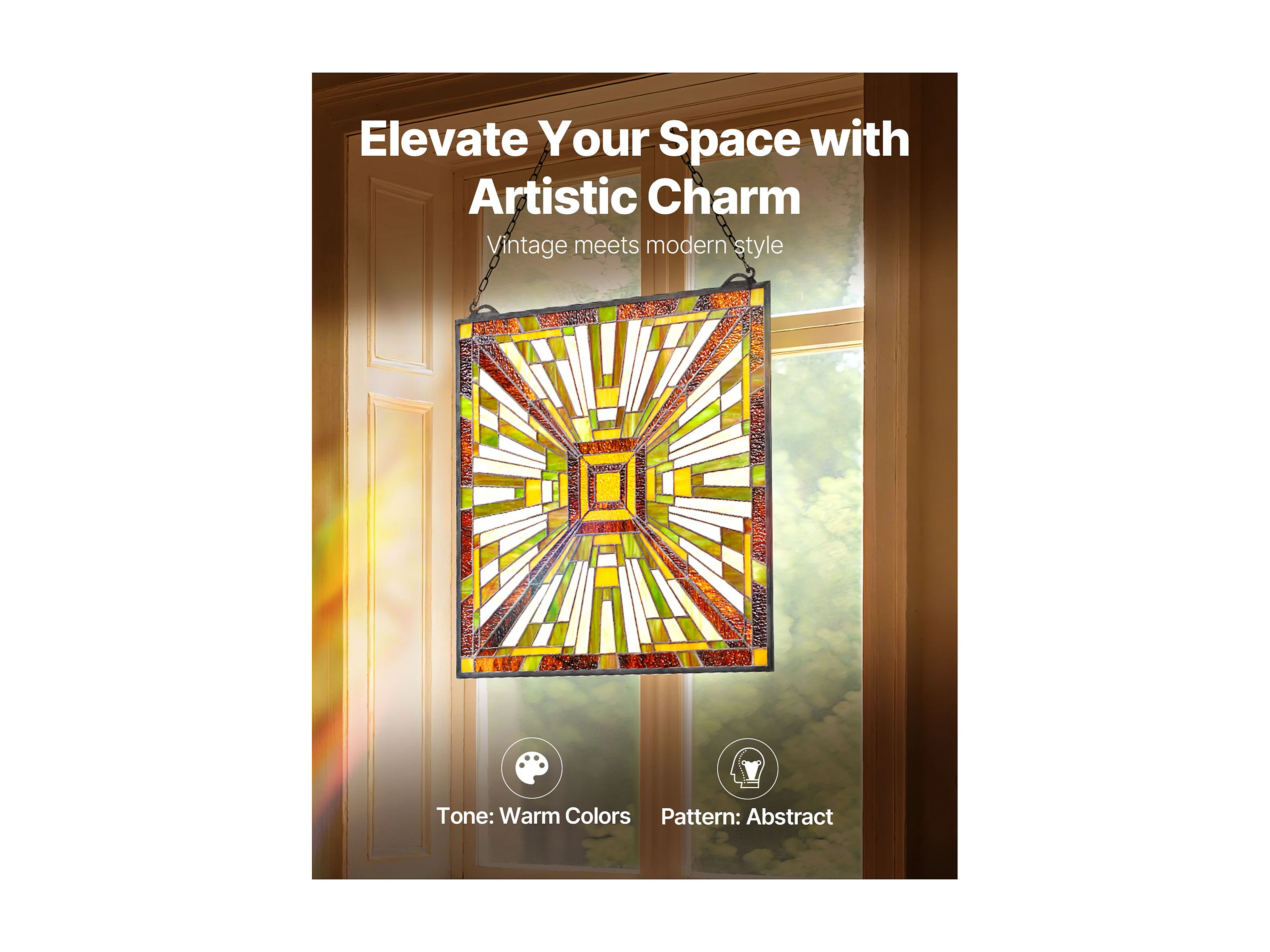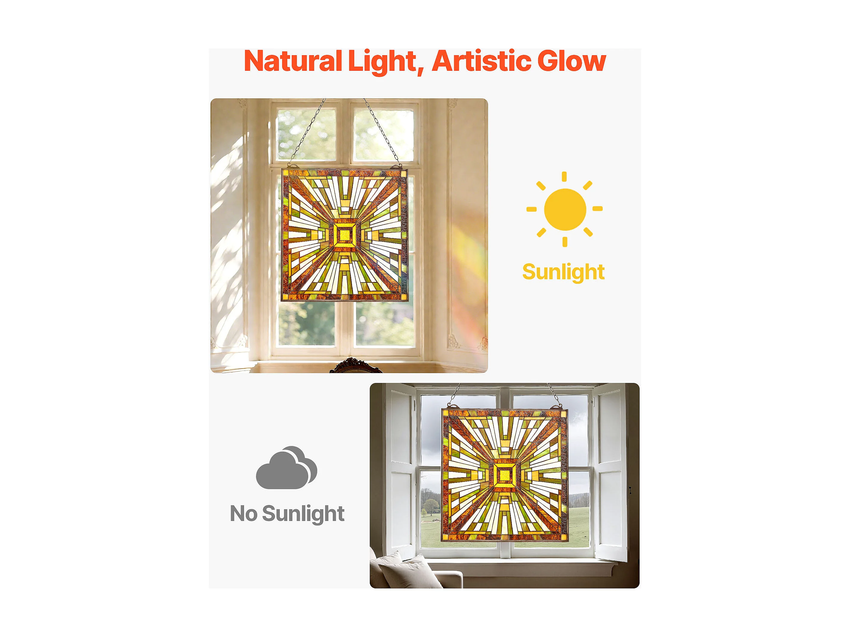 Atrapasol Vitral SucceBuy 50,1 x 52,7 cm, Vitral Colgante con Cadena, Estilo Tiffany, Rectángulo Vertical, Artesanía Tradicional Vintage para Decoración