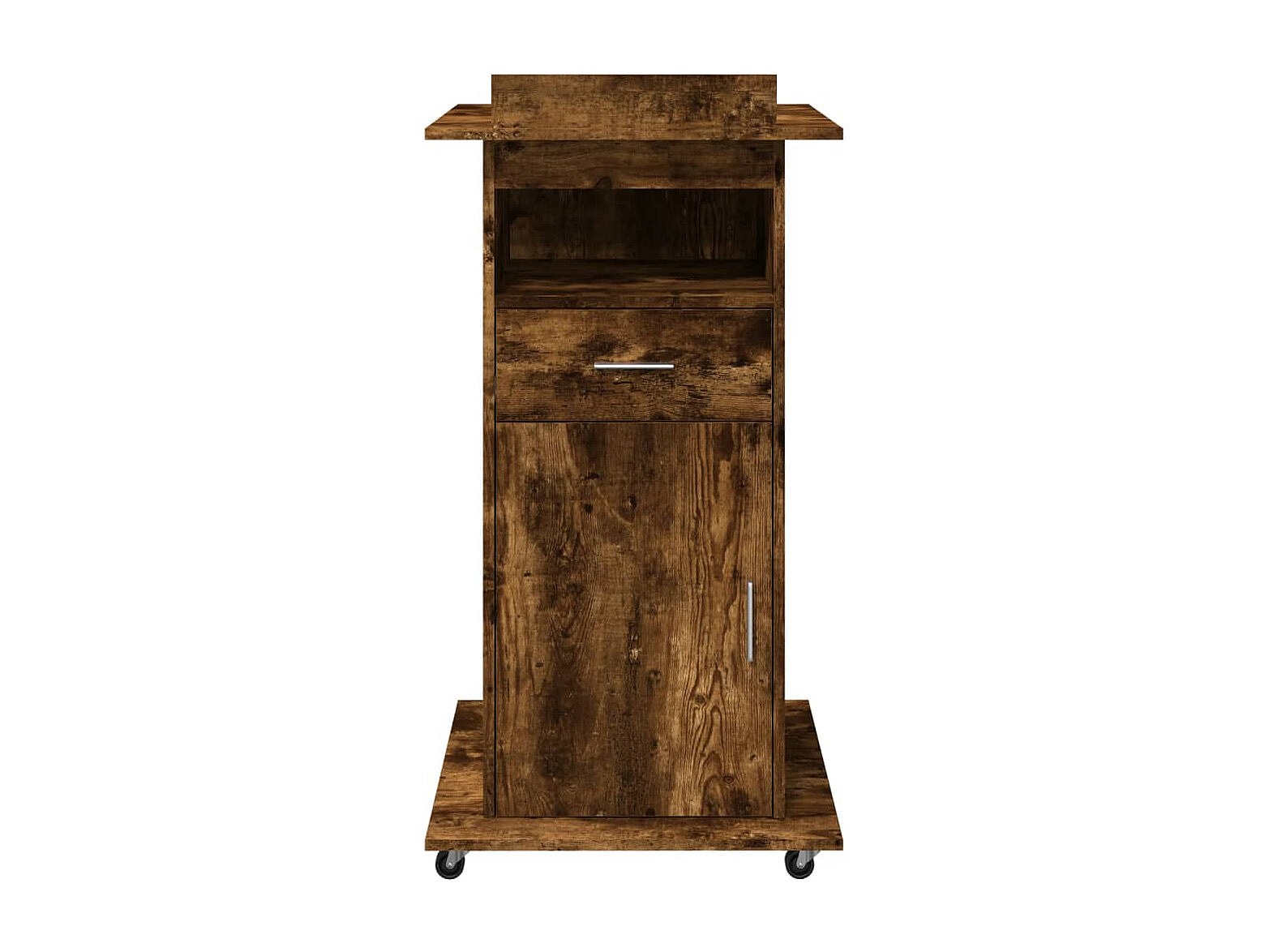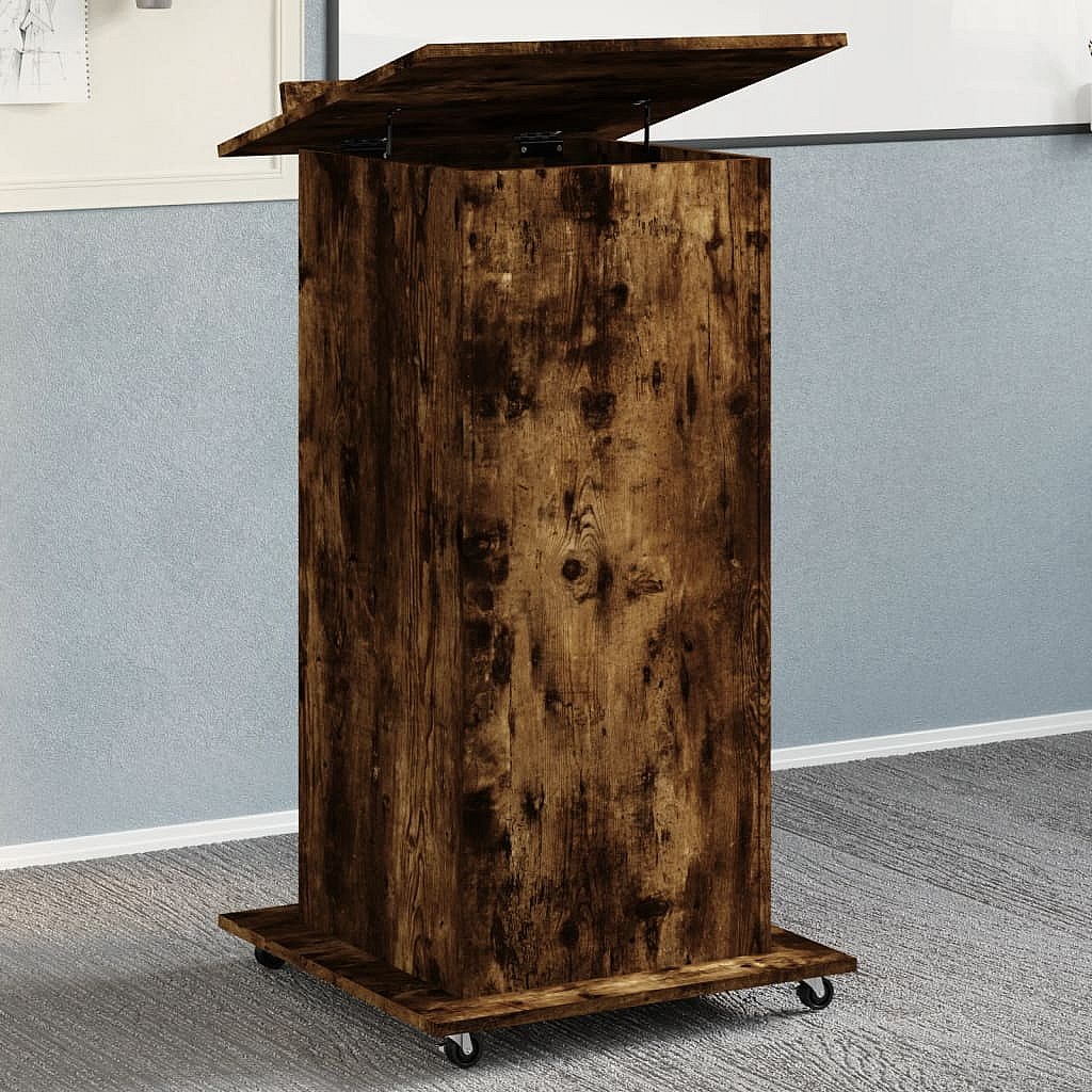 Atril con ruedas y cajón madera roble ahumado 55x55x107 cm