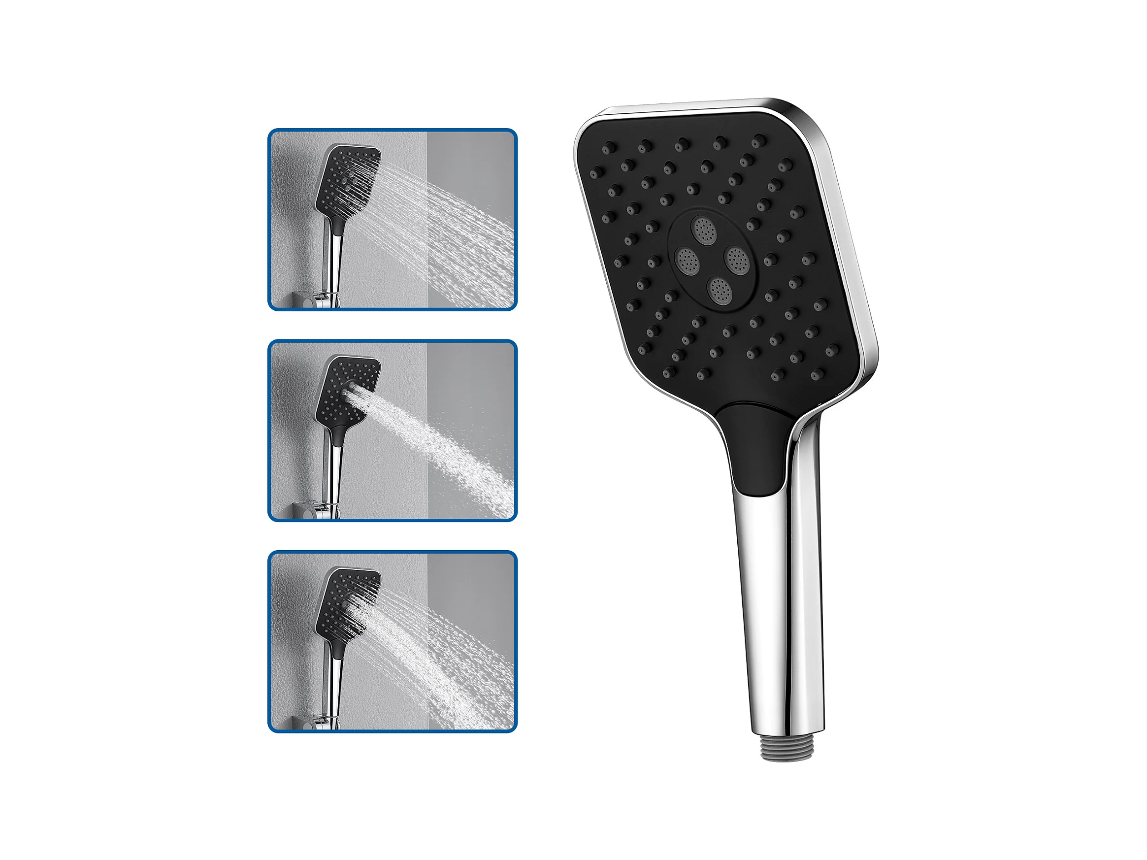 AURALUM MAX Alcachofa de Ducha de Alta Presión, con 3 Modos de Chorro, Rociador de Ducha Antical, Ahorro de Agua, Cromo + Negro(Sin tubería)