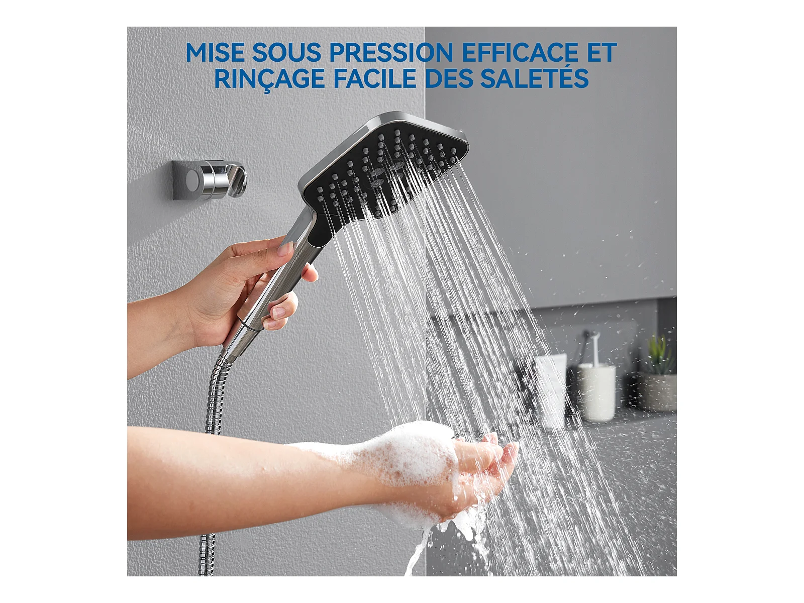 AURALUM MAX Alcachofa de Ducha de Alta Presión + Manguera de Acero Inoxidable de 1,5 m, con 3 Modos de Chorro, Rociador de Ducha Antical, Cromo
