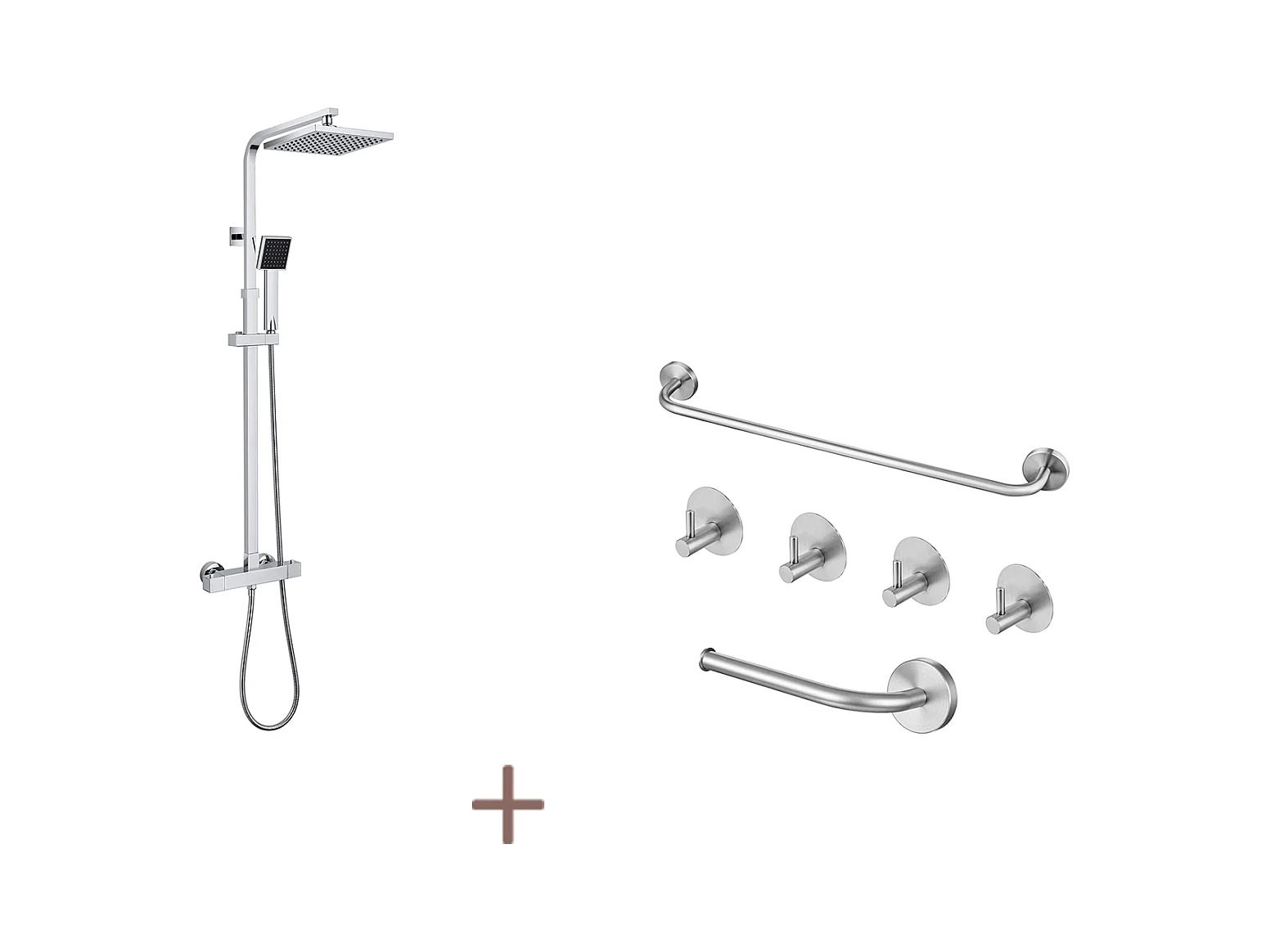 Auralum MAX Sistema de Ducha Cuadrado Columna de Ducha con Mezclador Termostático,Cuerpo eN Latón+60cm Toallero Cuarto de baño de acero inoxidable 304