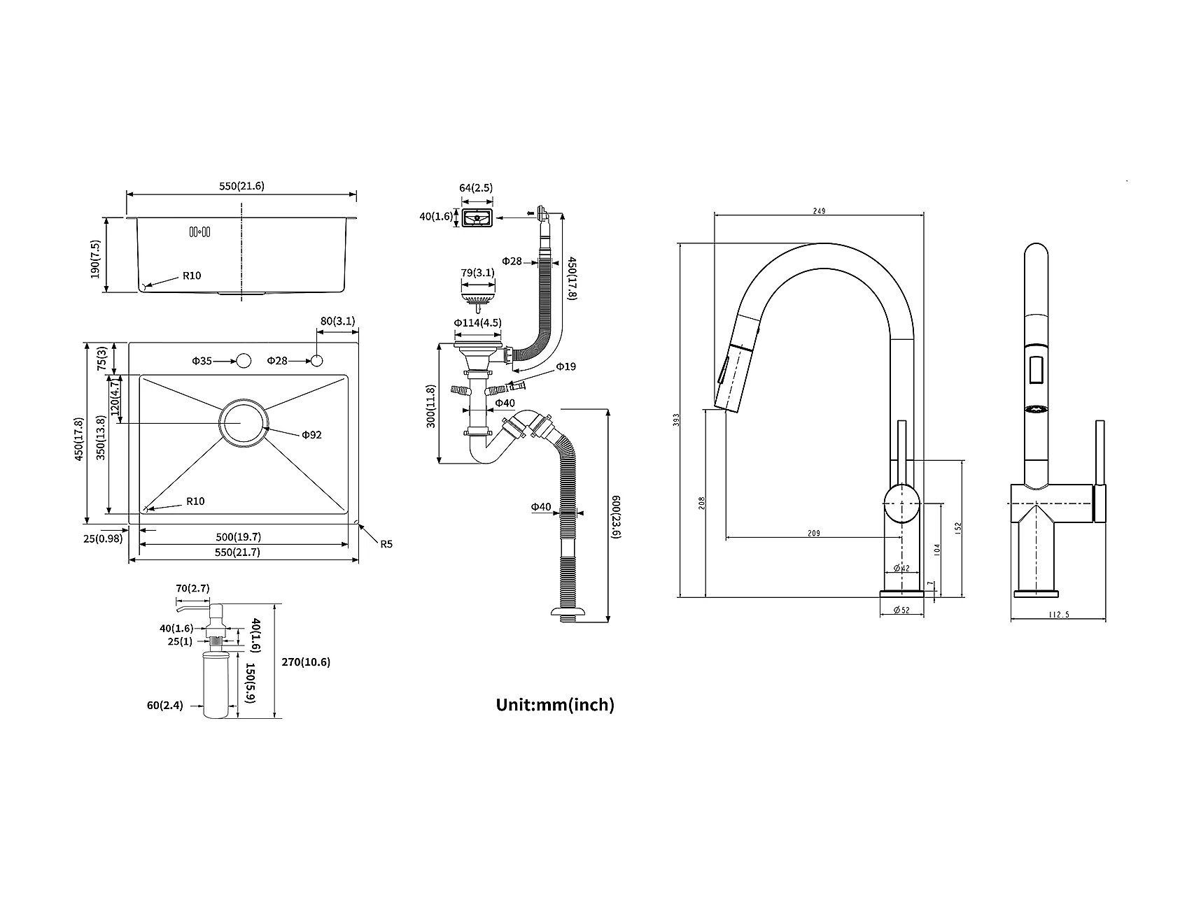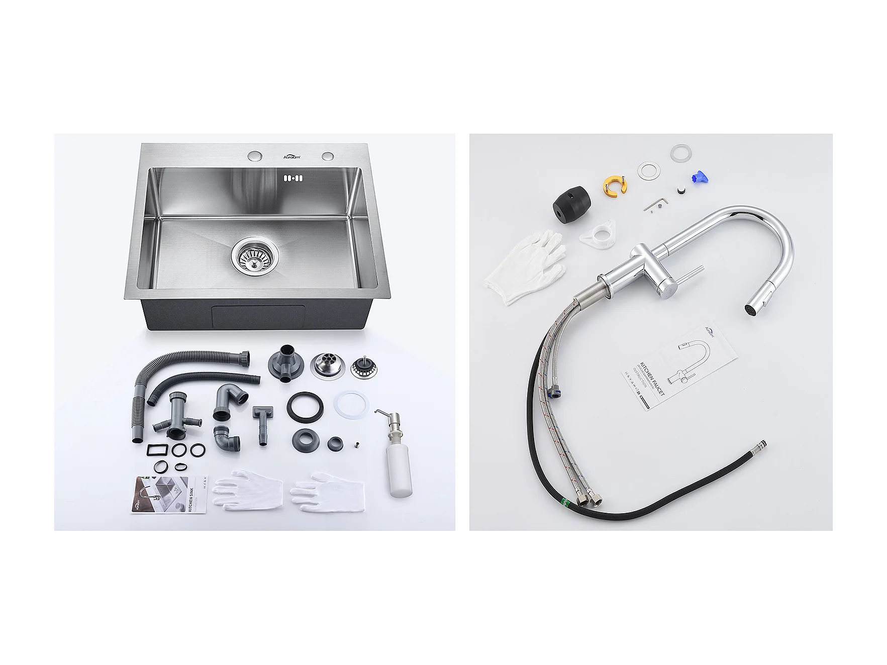 AuraLum Max Fregadero Cocina 1 Bandeja 55*45CM Fregadero Empotrado y de Colocar con Dispensador de Jabón+Grifo de Cocina retráctil de dos funciones