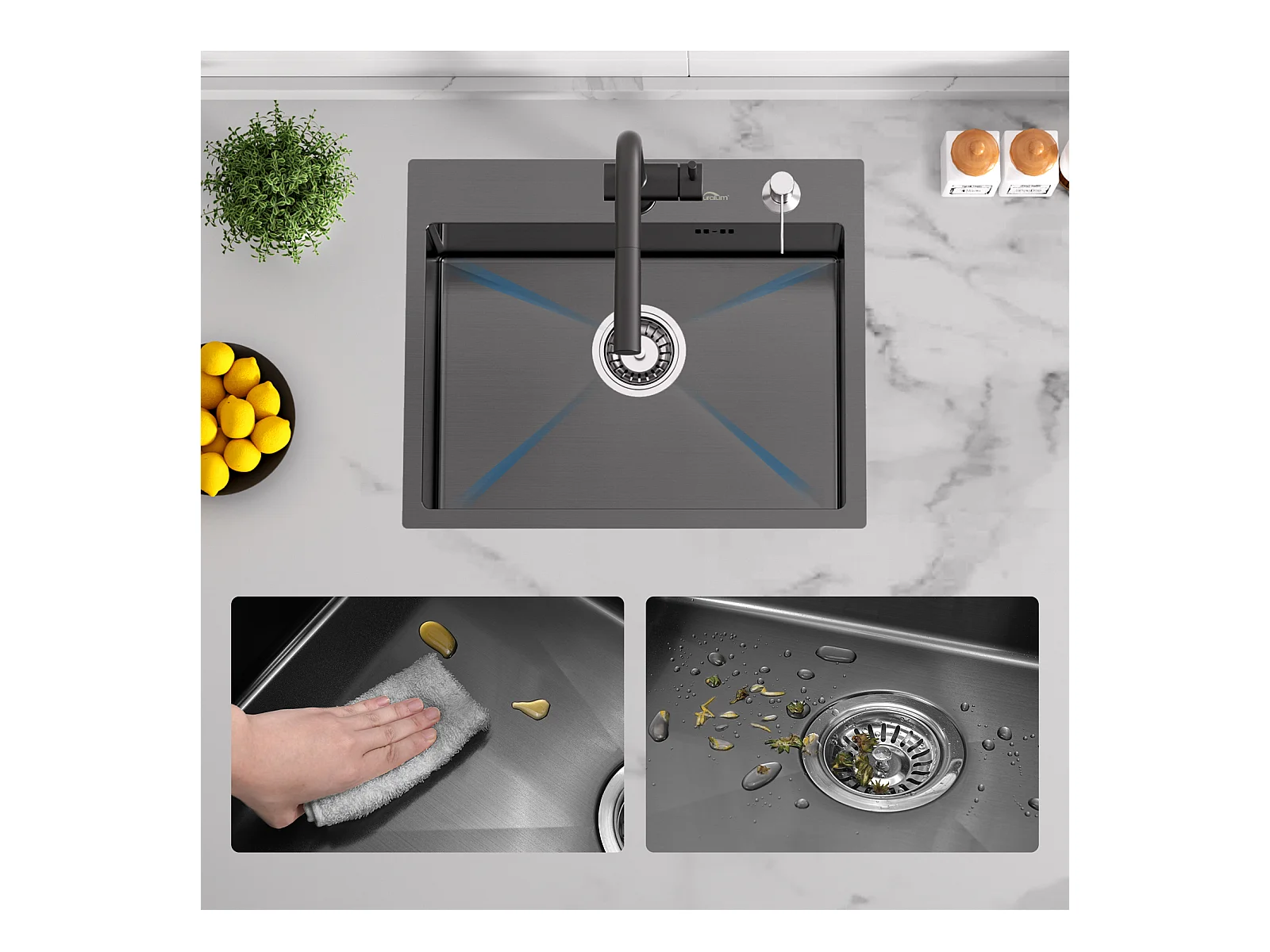 AuraLumMax Fregadero 1Contenedor 55x45x18.5CM Fregadero Empotrable Inoxidable FregaderoCocina Gris oscuro con Distributor Jabón/Set Drenaje,ModeloUE
