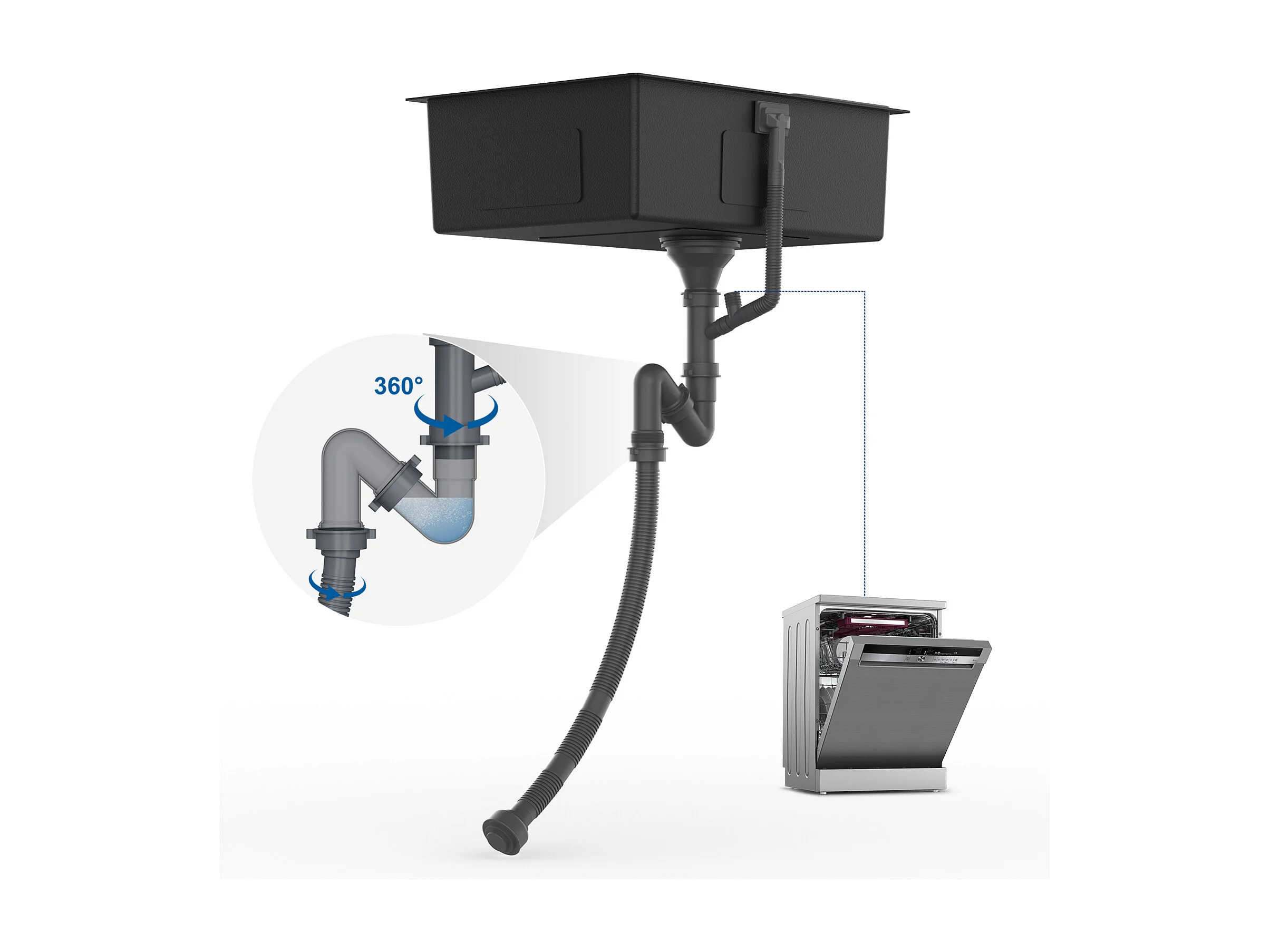 Fregadero Cocina 1 Bandeja 60*44*20CM,inoxidable 304, empotrado/subplano con Cesta de drenaje,Nano Silver+Grifo Cocina Giratoria 360° Ducha Extraíble