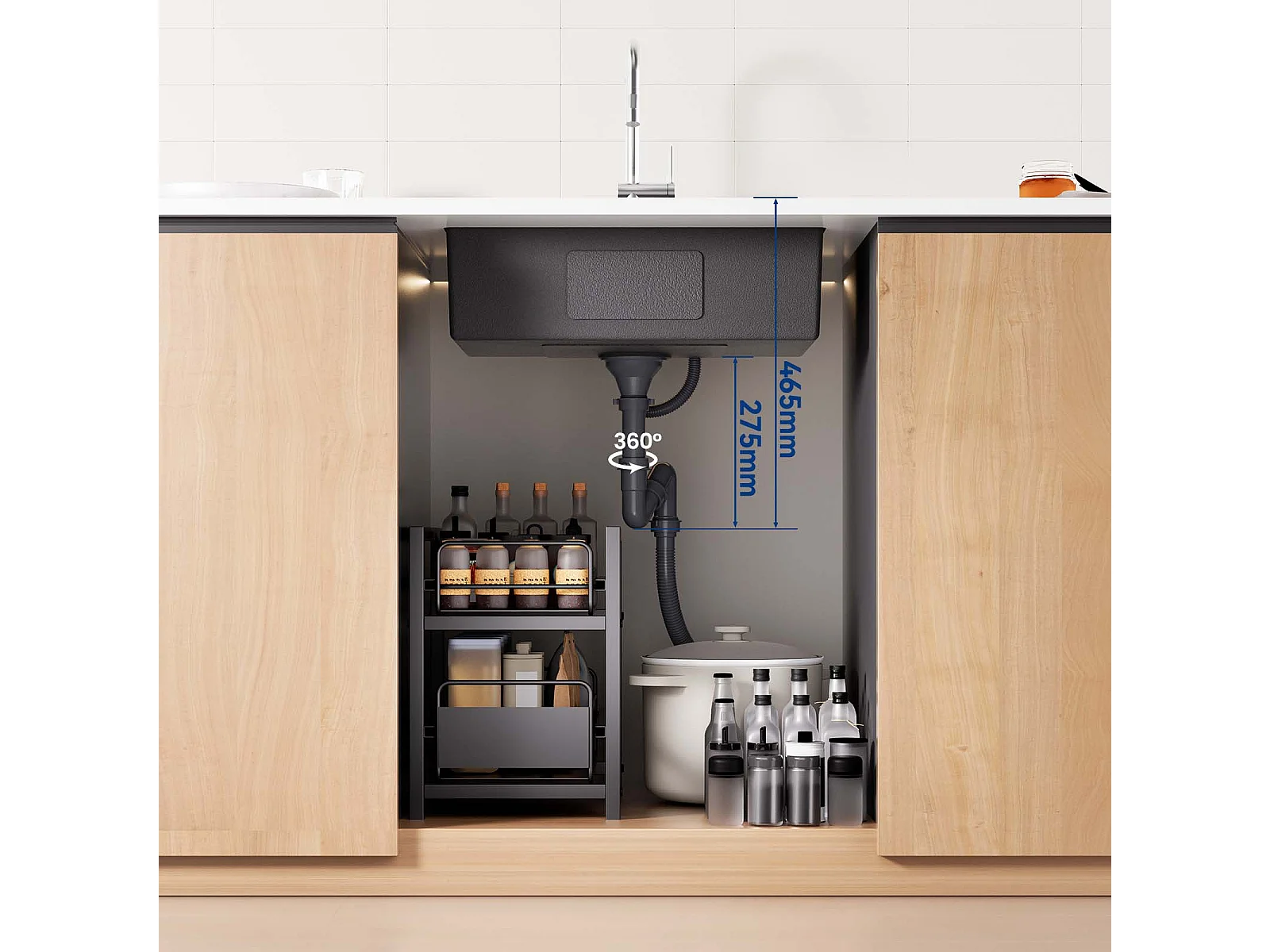 Auralum max Fregadero Cocina 1 Bandeja 60*44*20CM,inoxidable, empotrado/subplano con Cesta drenaje,Nano Silver+Mezclador Cocina Plegable Girante 360°