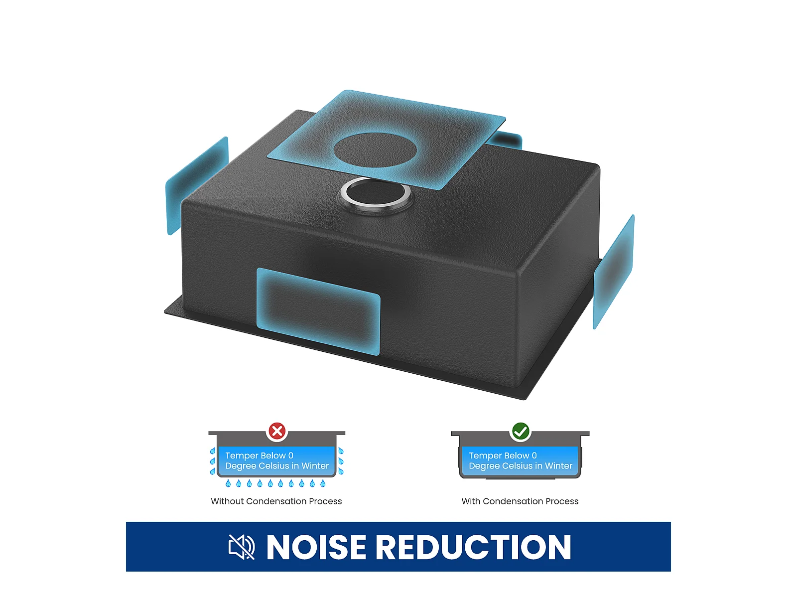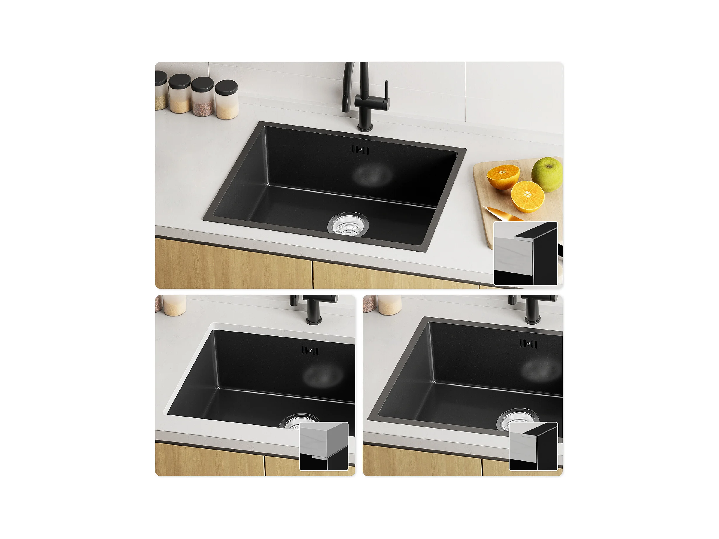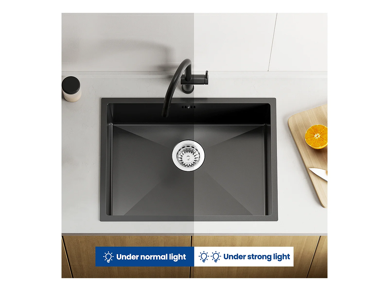 Auralum max Fregadero de 1 seno 60 x 44 x 20 cm,Fregadero de 1 seno inoxidable 304, Fregadero bajo encimera y bajo encimera con escurridor,Gris-Negro