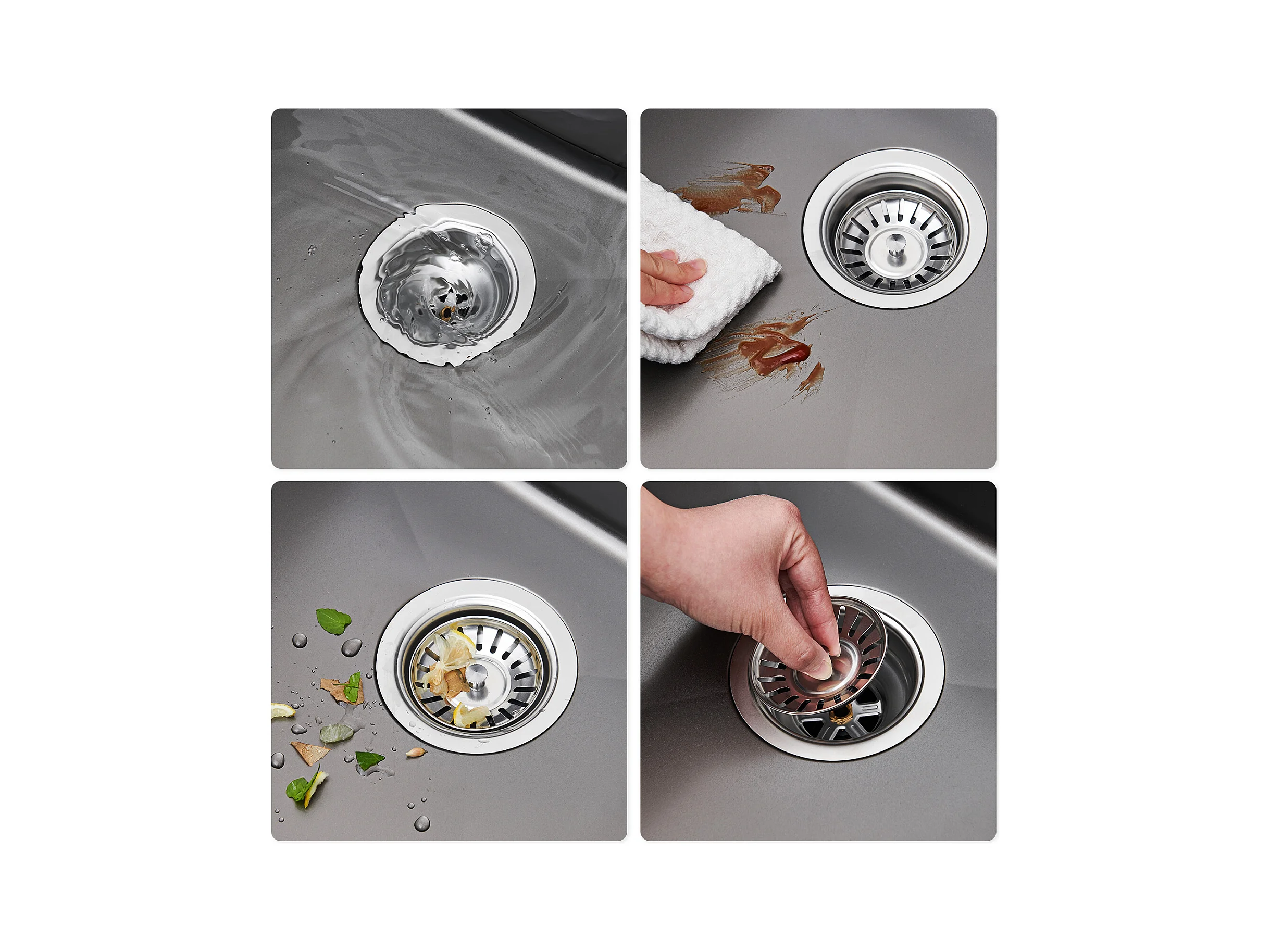 Fregadero cocina 1 seno 60*44*20CM,inox,empotrado/bajo encimera con cesta drenaje,gris-negro+grifo cocina con ducha, mezclador de fregadero extraíble