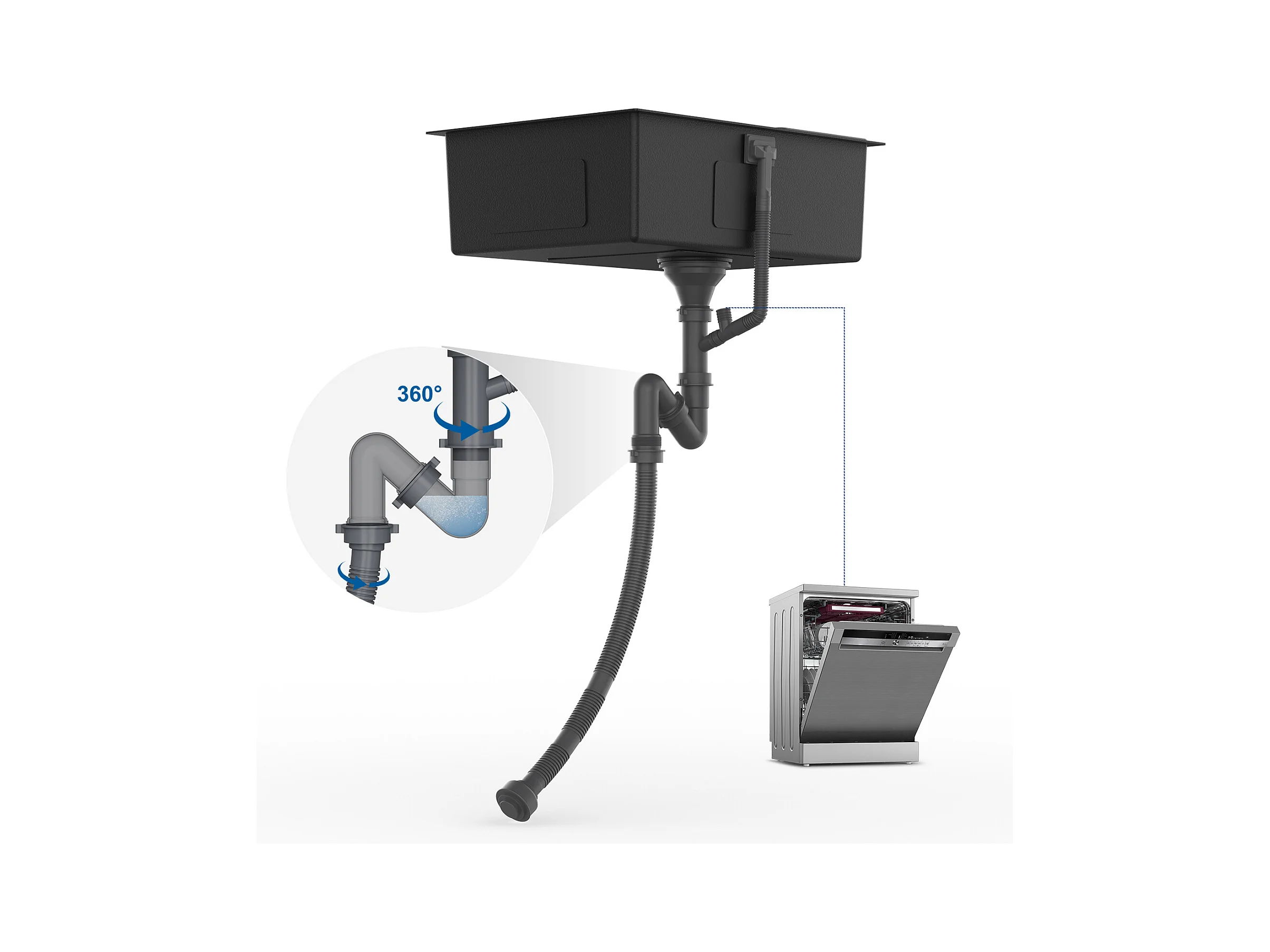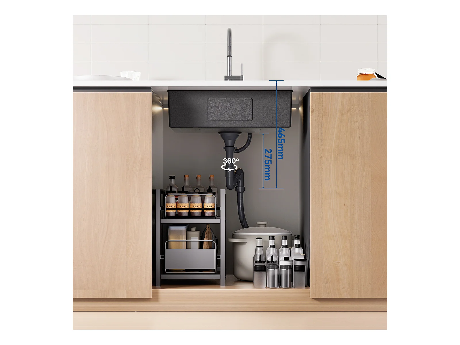 Auralum Max Fregadero Cocina 1 Bandeja 60*44*20CM,inoxidable 304, empotrado con Cesta drenaje,Negro+Grifo Cocina Rotativo 360° Agua Fría y Caliente
