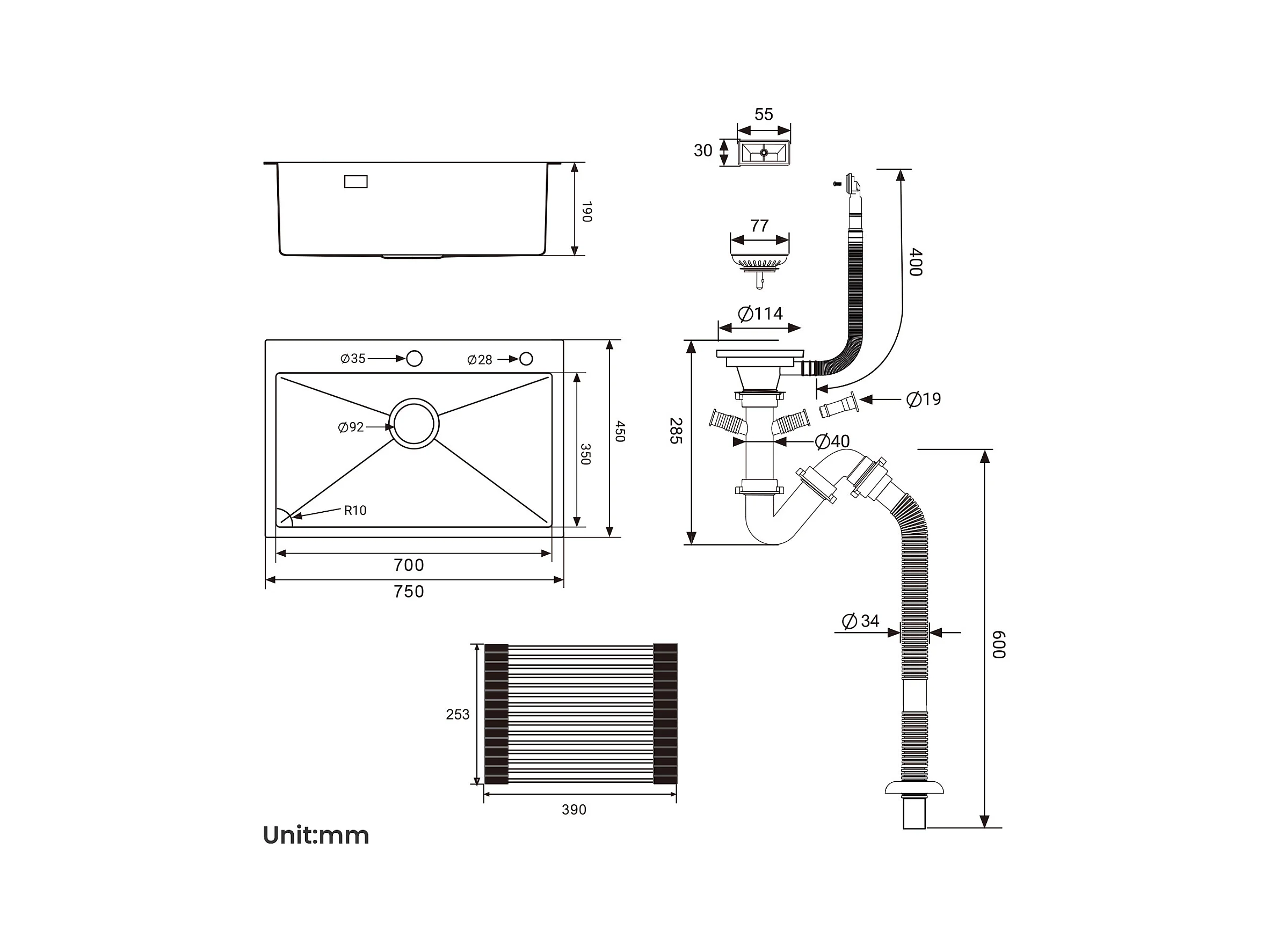 AuralumMAX Fregadero Cocina 1 Bandeja 75 x 45 cm,Fregadero Inox Negro con Escurridor Plegable+Mejedor Cocina Giratorio 360°,Barbote Desmontable,Negro