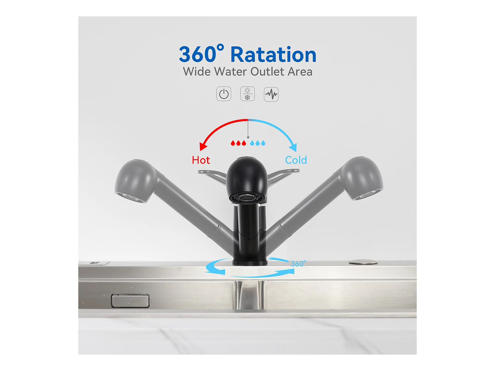 Mezclador de cocina NOir con Ducha Extraíble Giratoria 360 ° de Acero Inoxidable Grifo Cocina Fregadero 2 Funciones Mezclador de Cocina