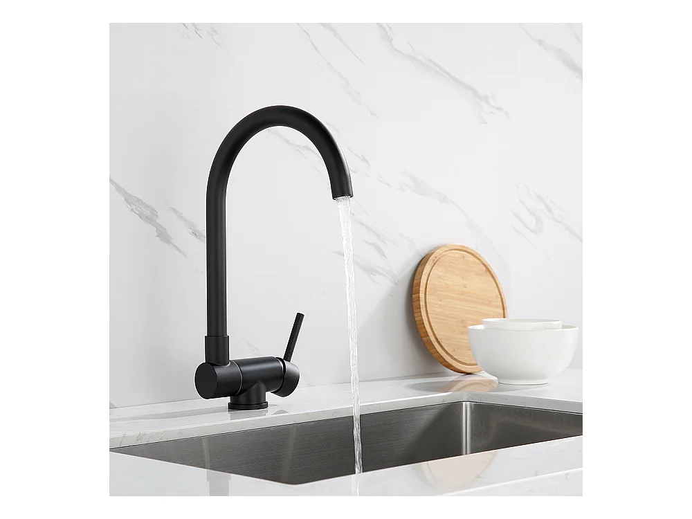 Mezclador Cocina con Ducha Extraíble Negro mate Rotativo a 360 °eN Acero Inoxidable Grifo Cocina Fregadero 2 Funciones Mezclador Cocina