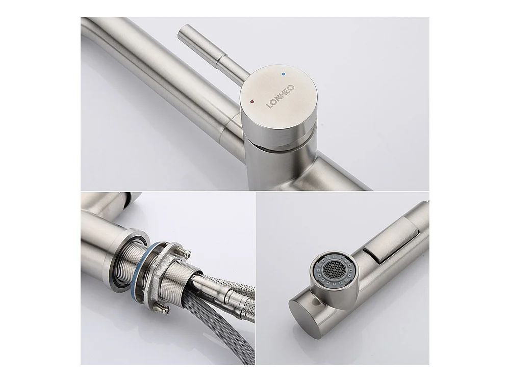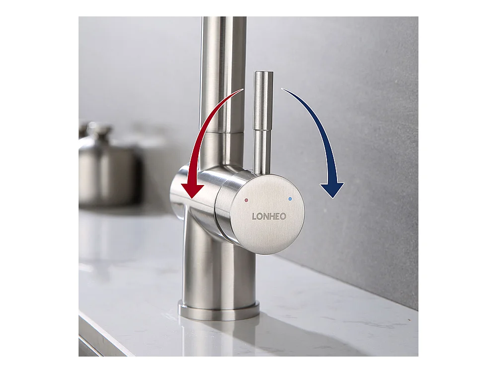 LOnheo Max Grifo cocina giratorio en forma de U 360° Mezclador de fregadero agua fría y caliente de acero inoxidable con palanca desmotable,dorado