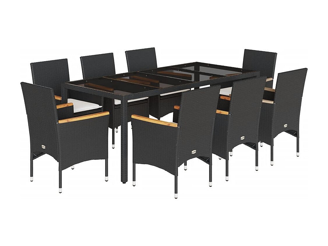 Bakersfield Set comedor jardín 9 pzas cojines ratán sintético vidrio negro