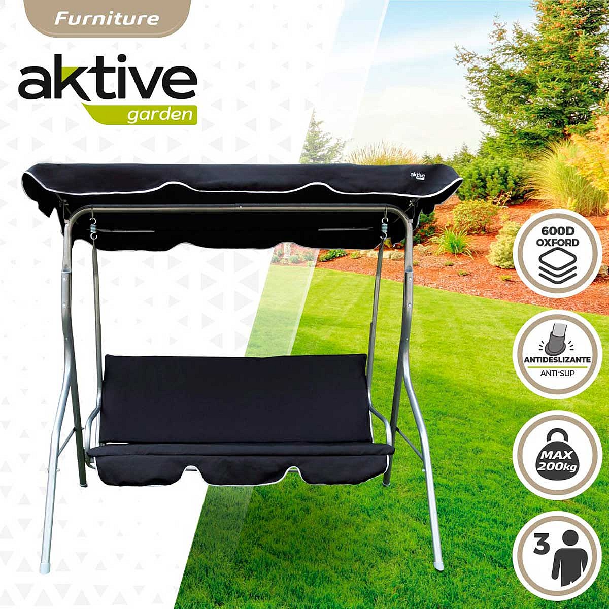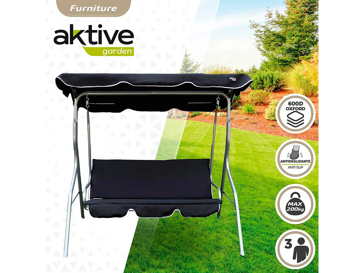 Balancín Aktive Garden con toldo inclinable 3 plazas negro