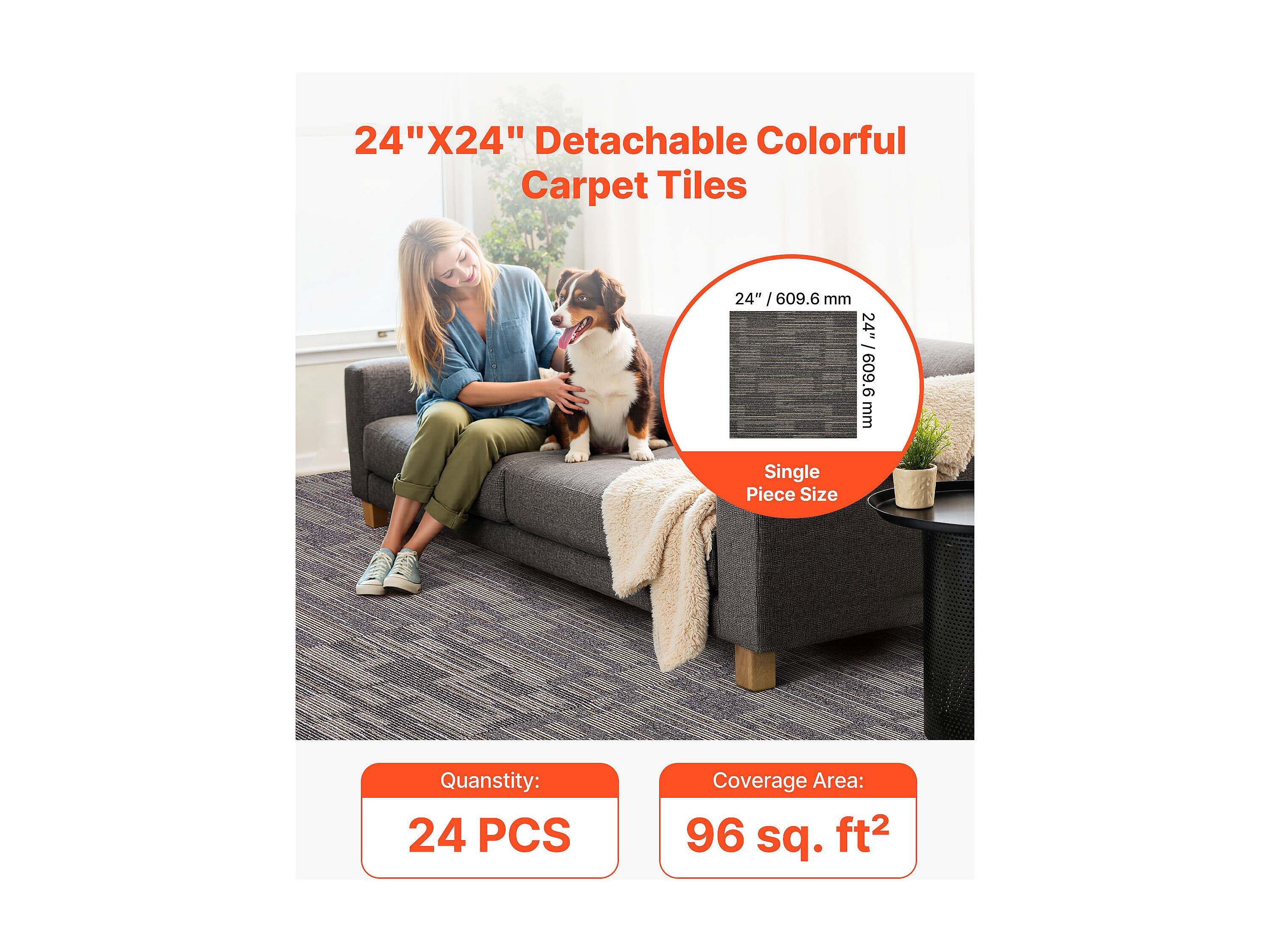 Baldosa de Alfombra Reutilizable SucceBuy, 61 x 61 cm, Lote de 24, Cobertura 8,9 ㎡, Espesor 6 mm, de Pelo Corto, Revestimiento de Suelo Suave Modular Cuadrado