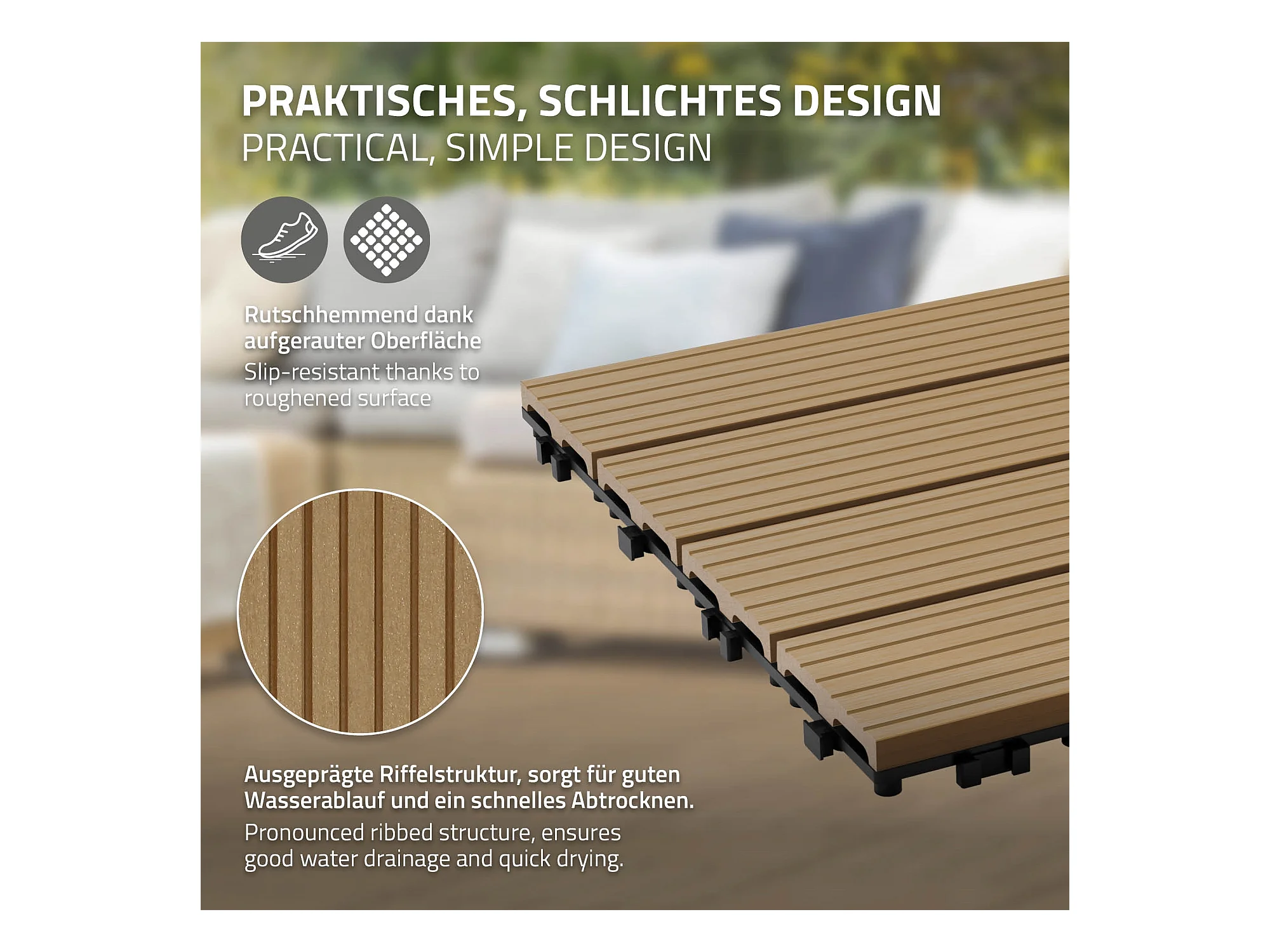 Baldosas de WPC 30x30cm 1m² para jardín piscina patio ECD Germany
