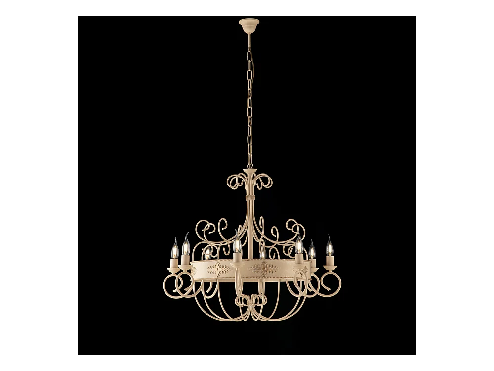 Lámpara de araña Baltimora en hierro lacado marfil decapado 8 luces 126 Ø76 BL183-8-AV