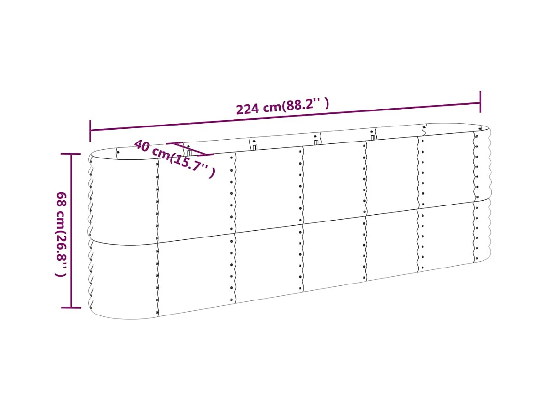Bancal de jardín elevado de acero con recubrimiento en polvo, 224 x 40 x 68 cm, color gris