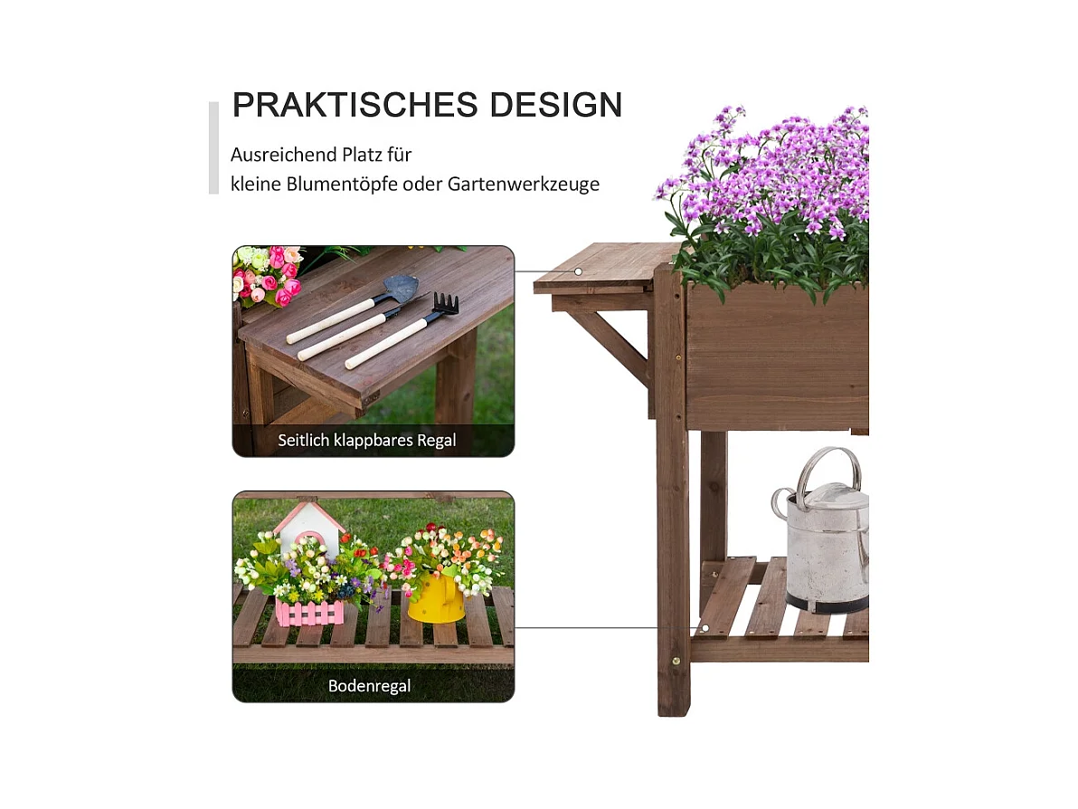 Jardinera elevada con 4 contenedores, sistema de autorriego, madera, color marrón (79,5x49,5x80 cm)
