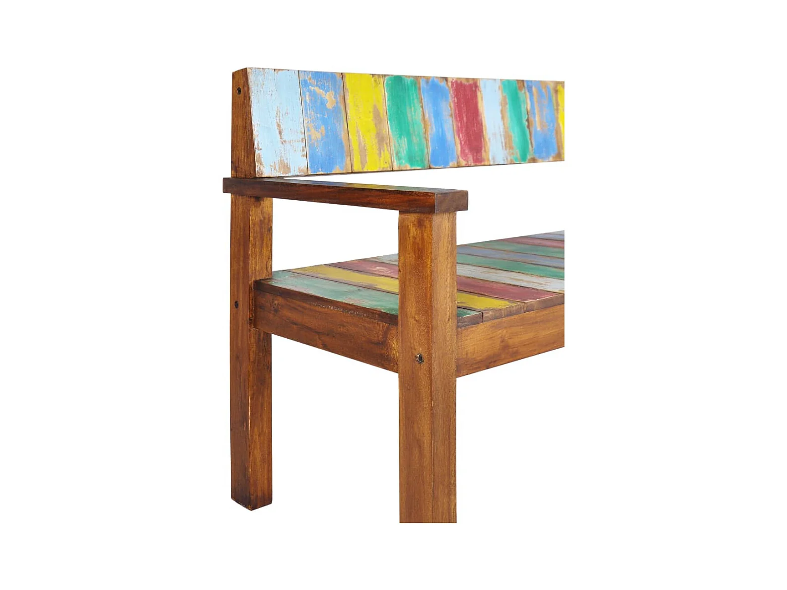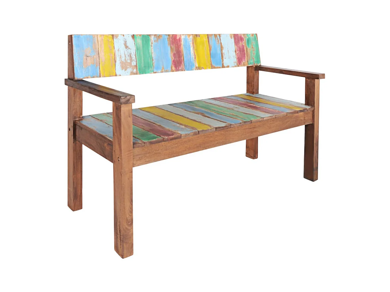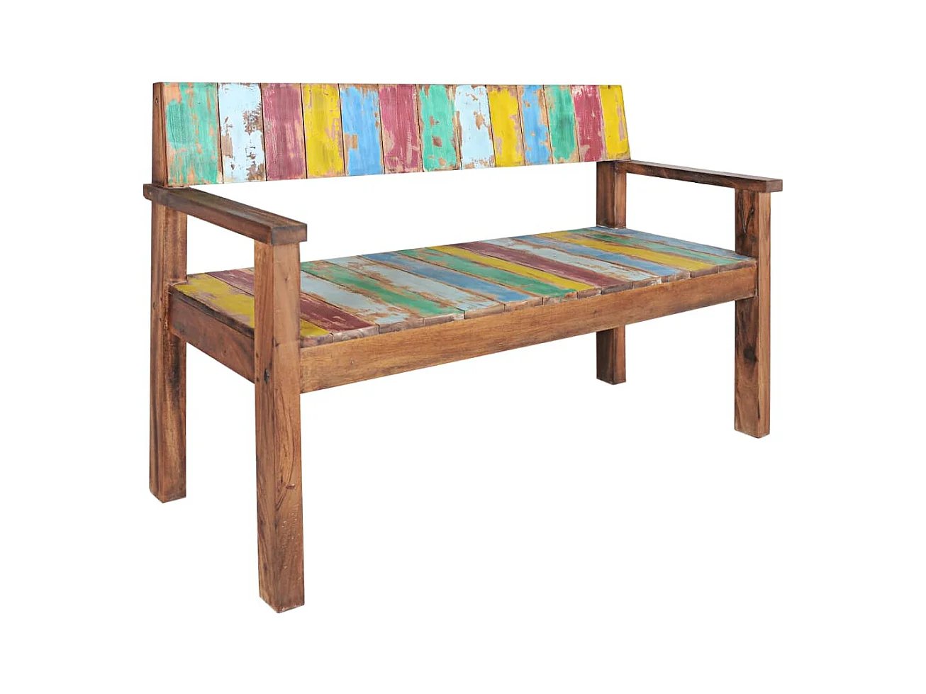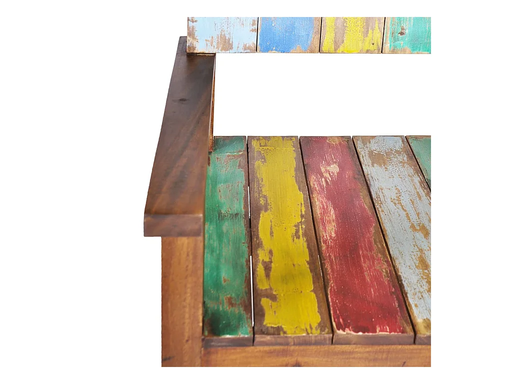 Banco de almacenamiento multicolor de madera maciza recuperada