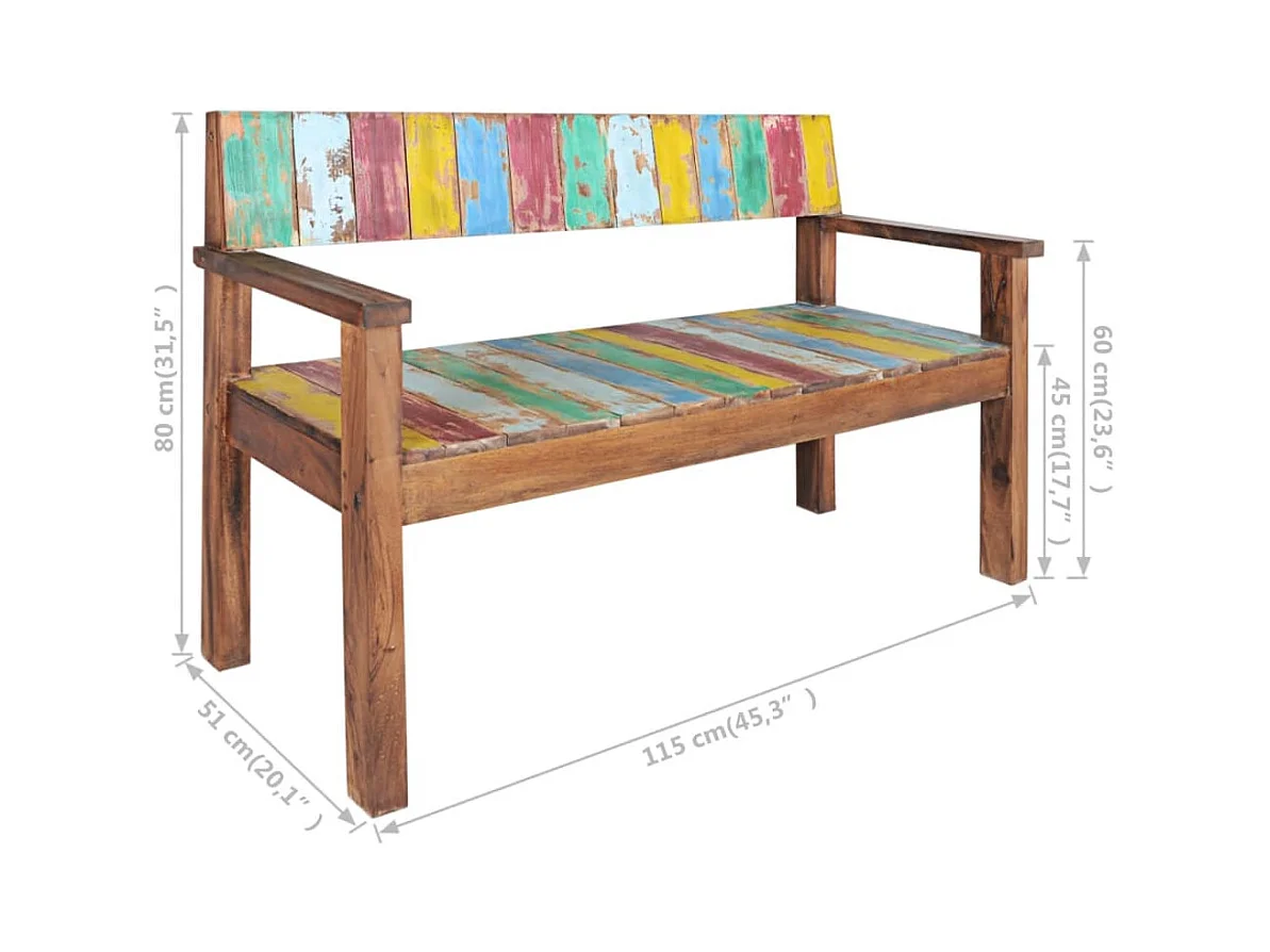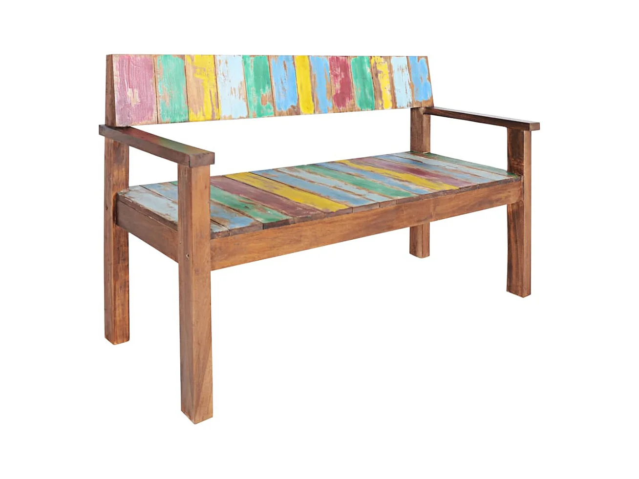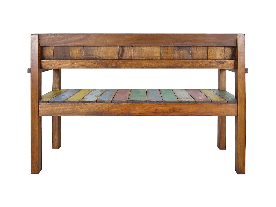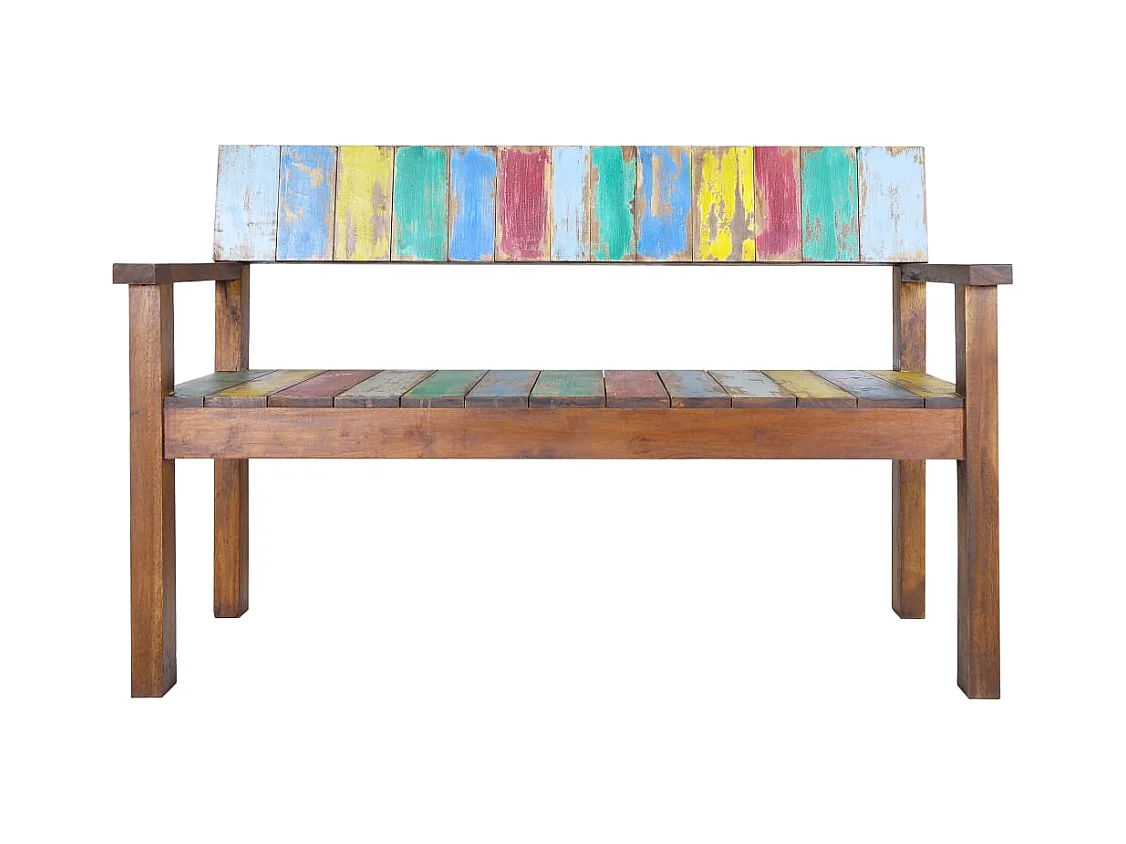 Banco de almacenamiento multicolor de madera maciza recuperada