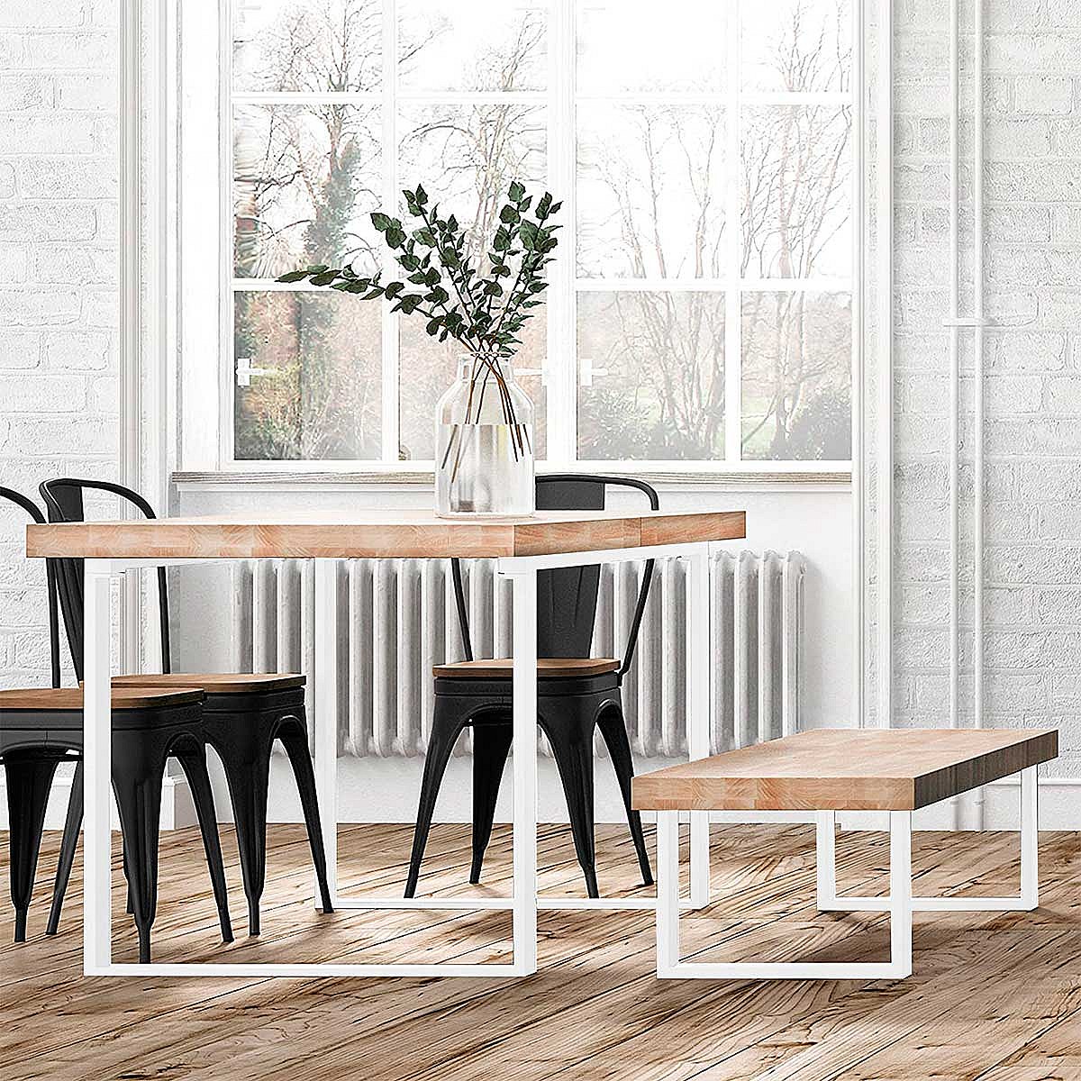 Banco asiento de 120x47x34 cm con en color roble nordish patas metálicas blancas Darek