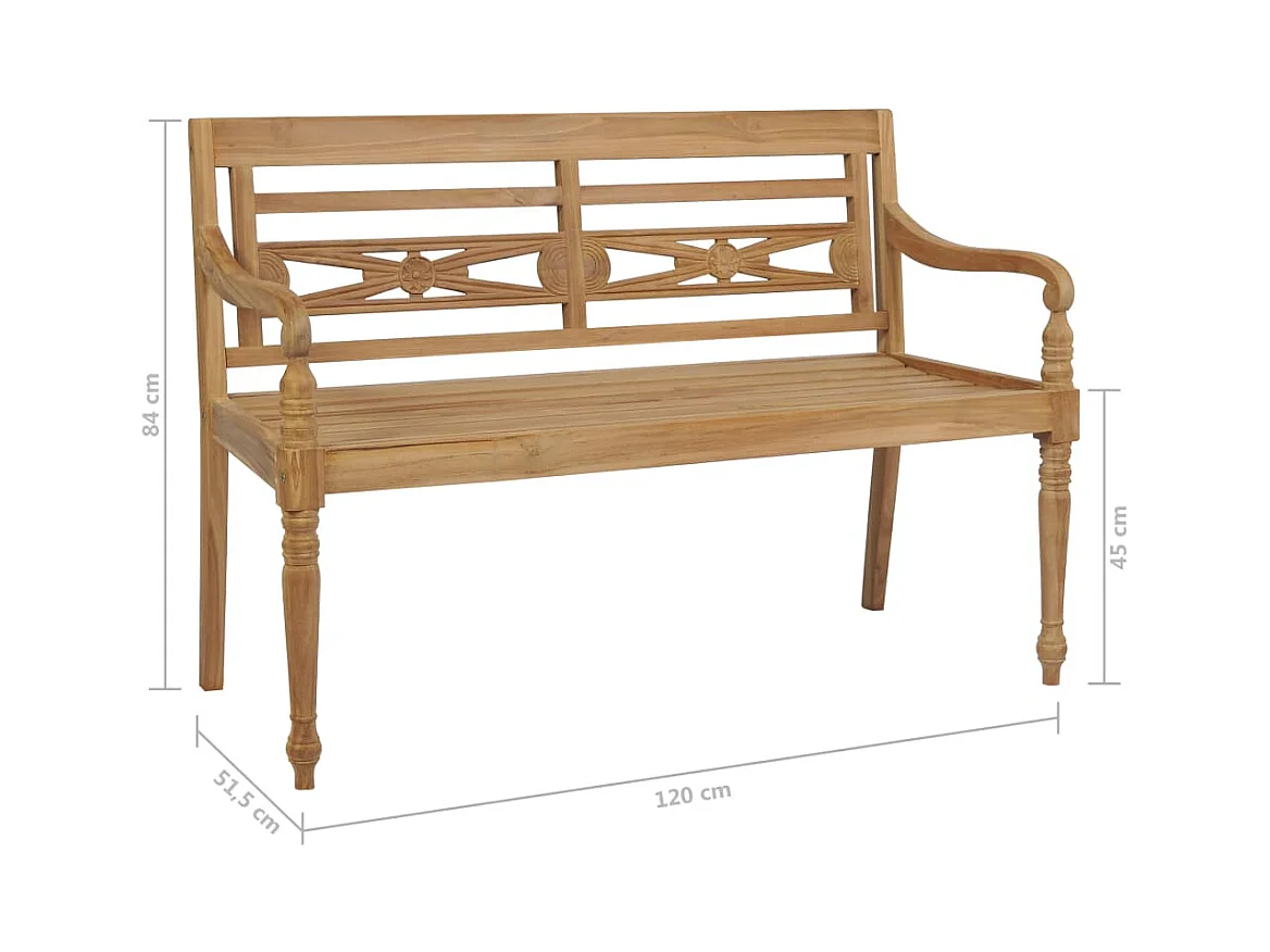 Banco Batavia con cojín cuadros gris 120 cm Madera Teca