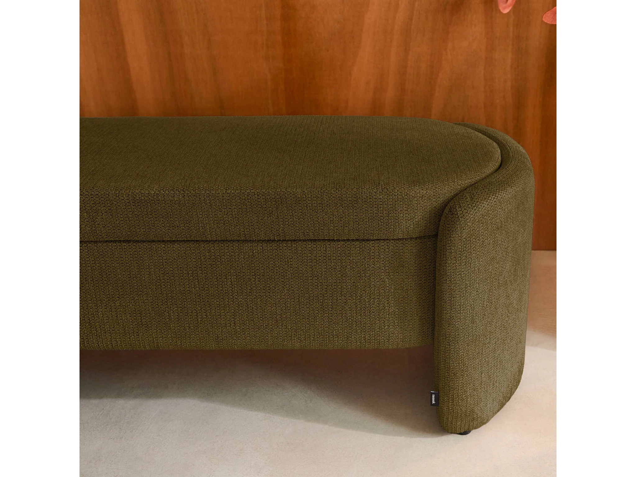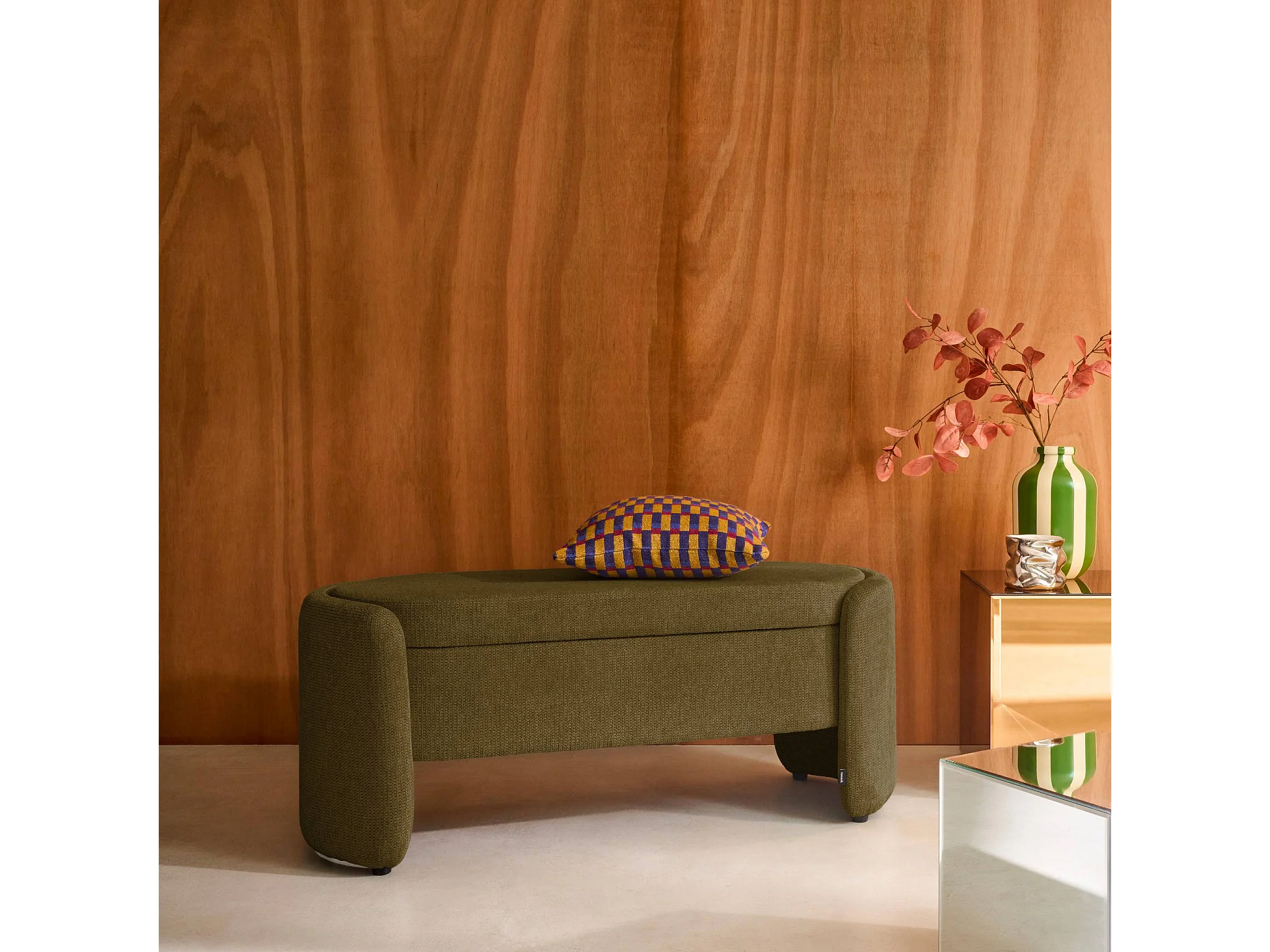Banco baúl, pie de cama contemporáneo de tela simple verde kaki