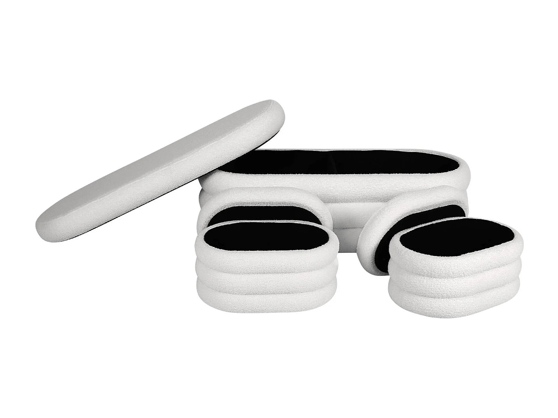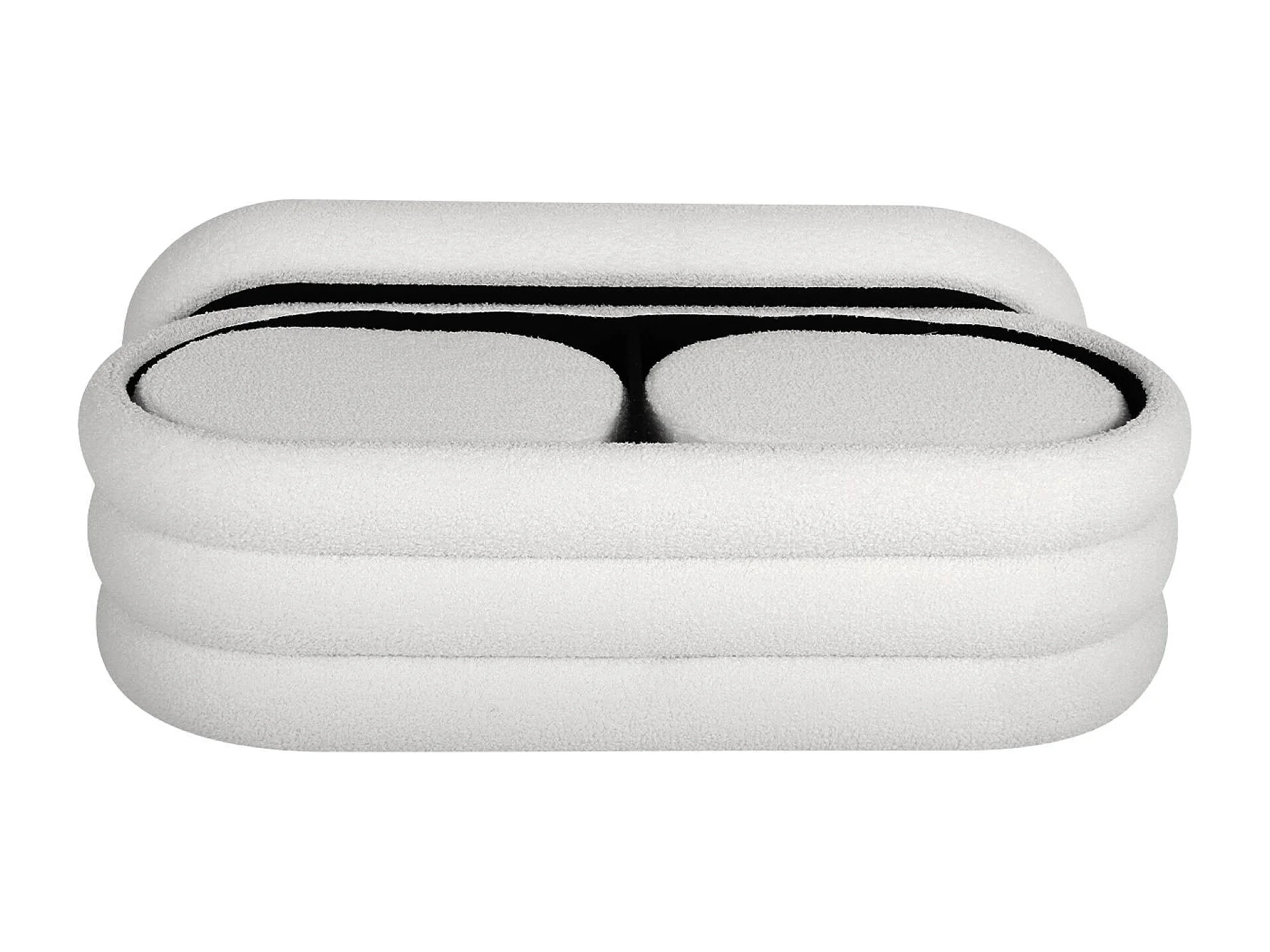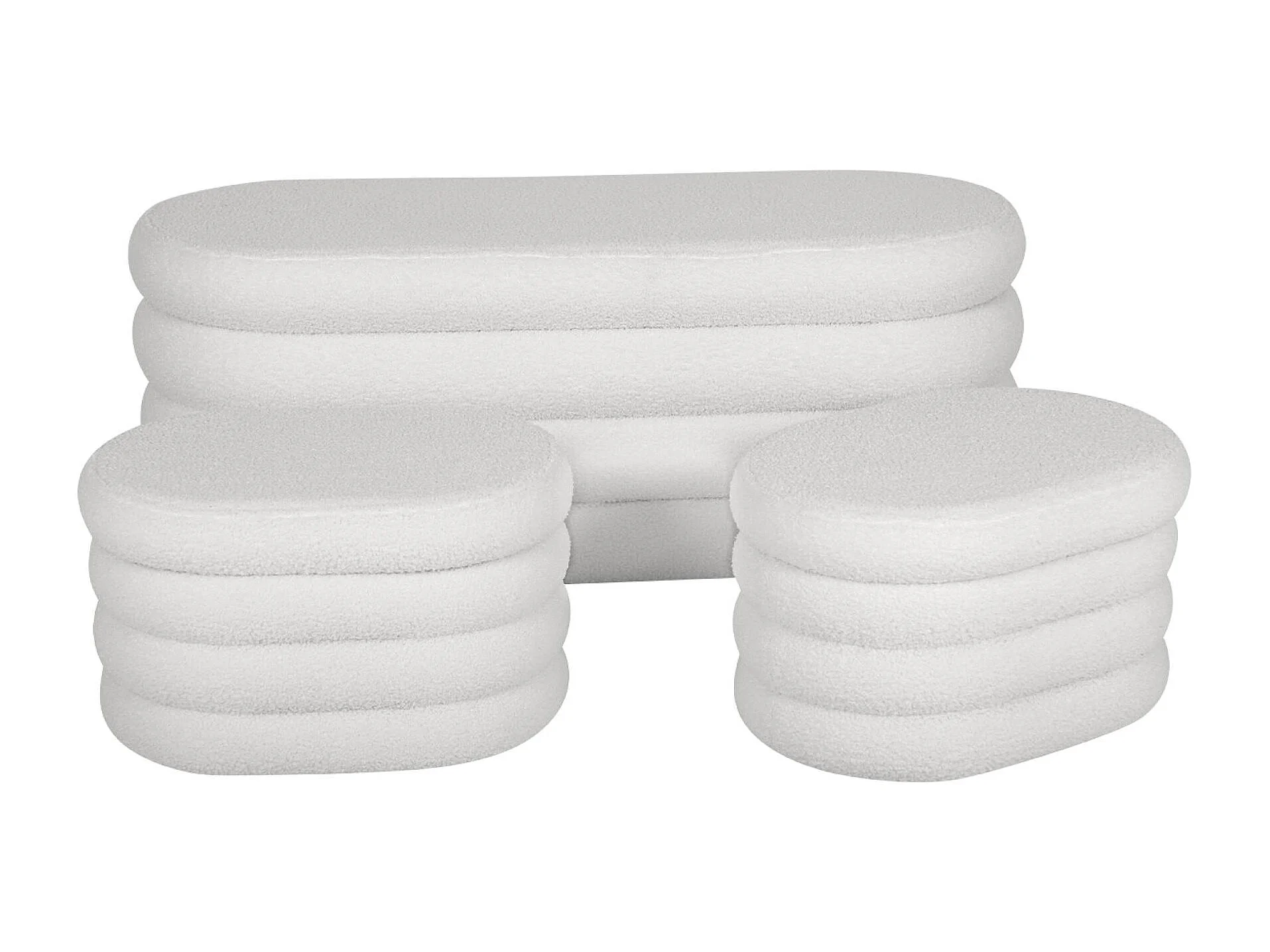 Banco cofre de almacenamiento borreguito con 2 puffs blanco