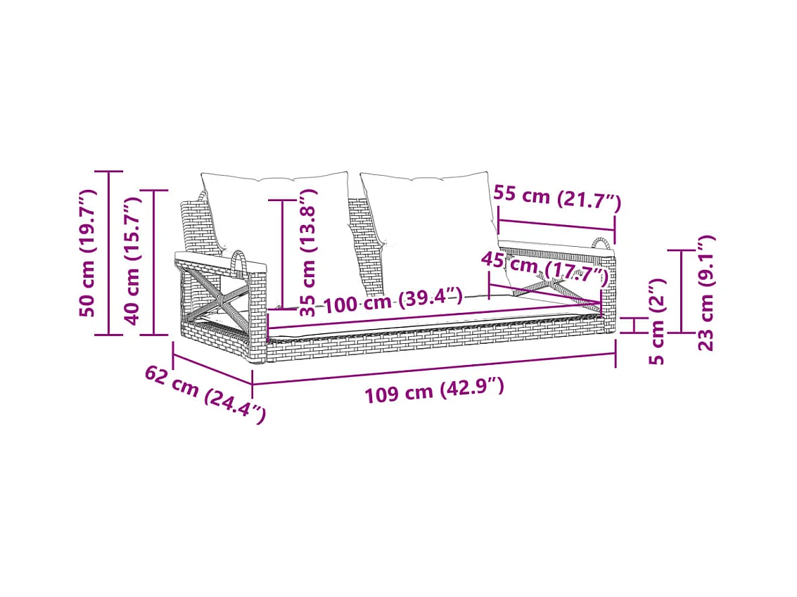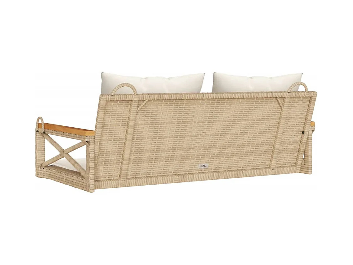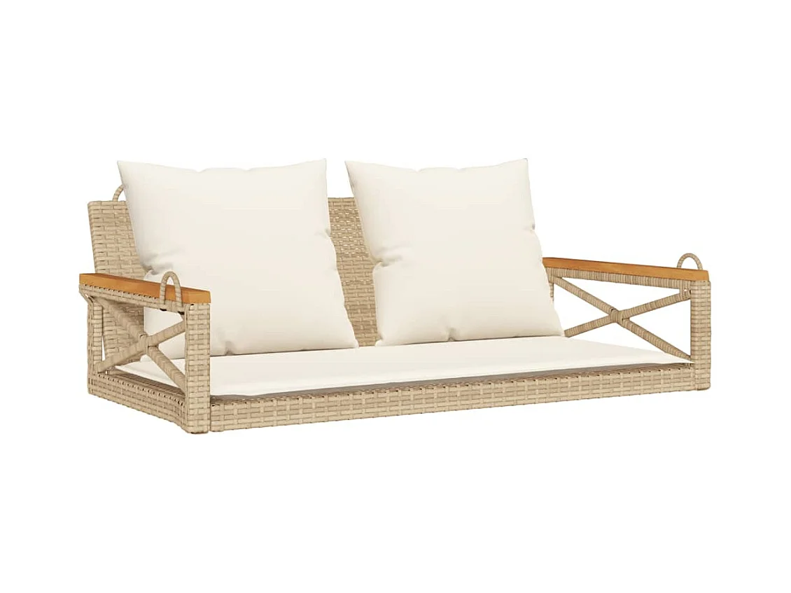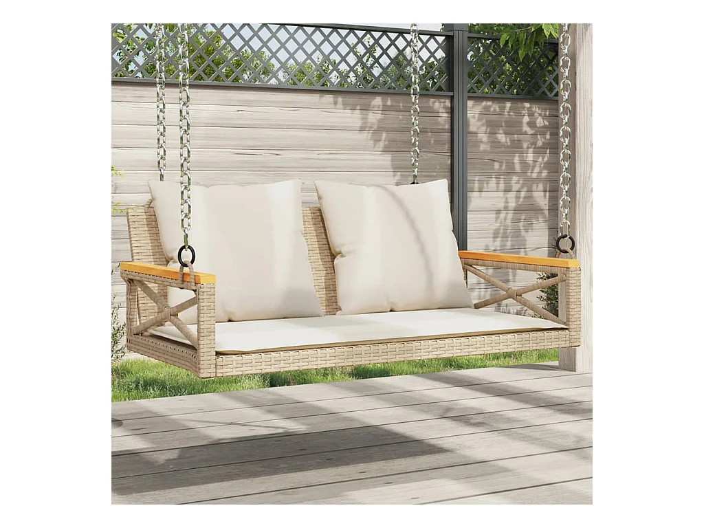 Banco columpio con cojines ratán sintético beige 109x62x40 cm