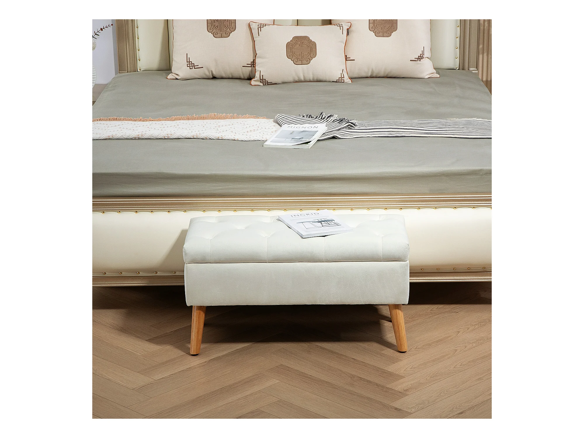 Banco con almacenaje,Banco tapizado,Baúl con patas de madera,102 x 45 x 46 cm