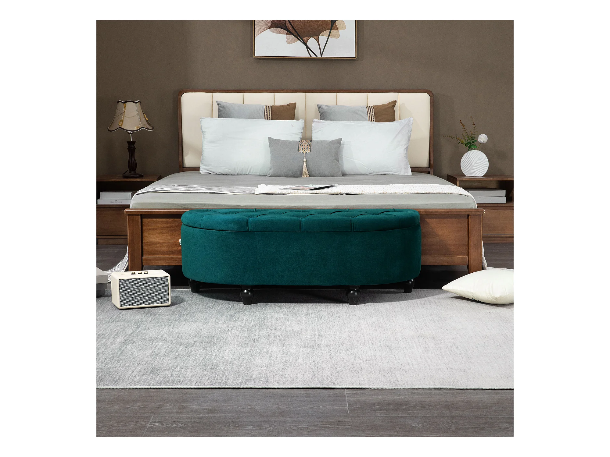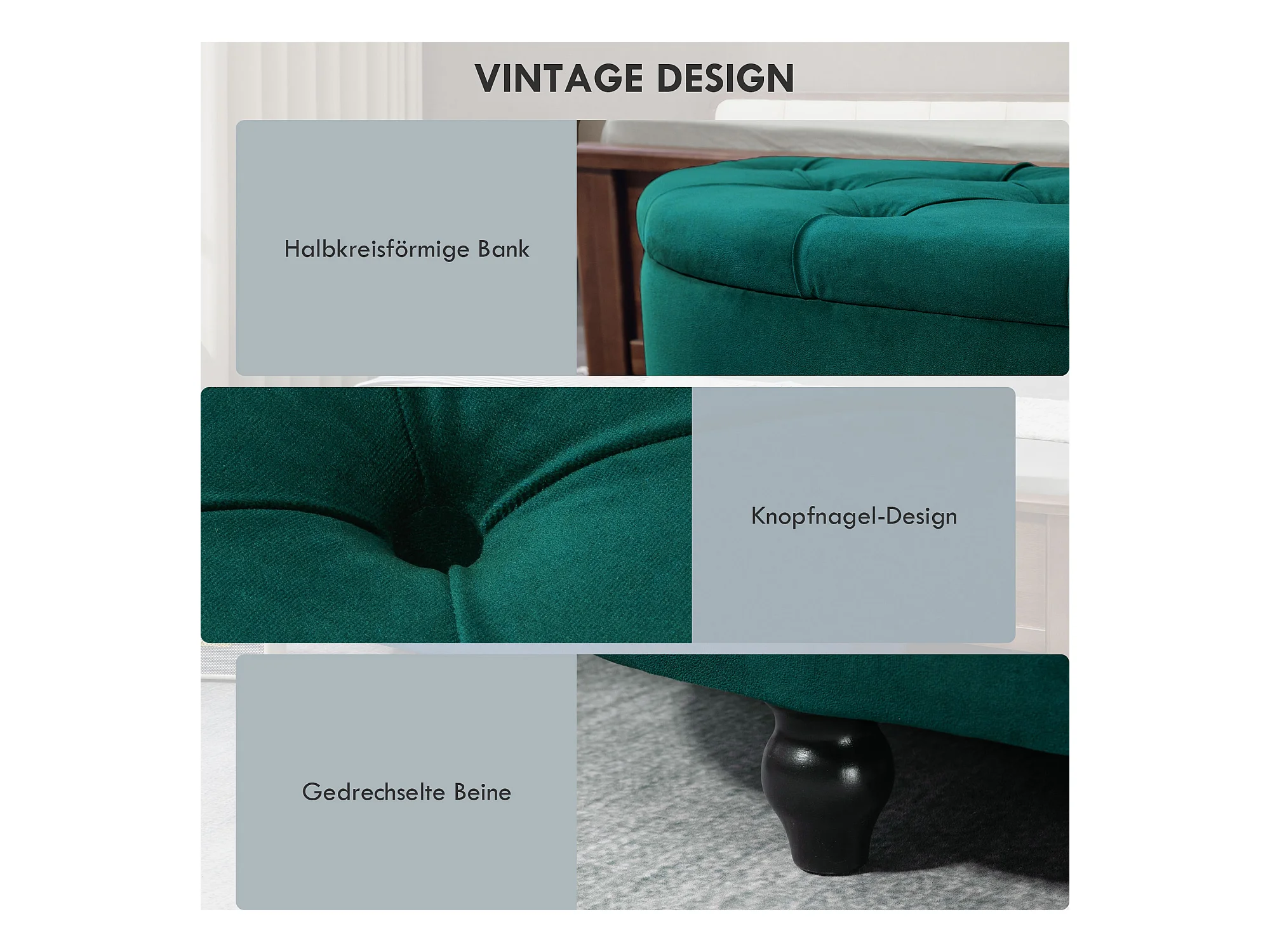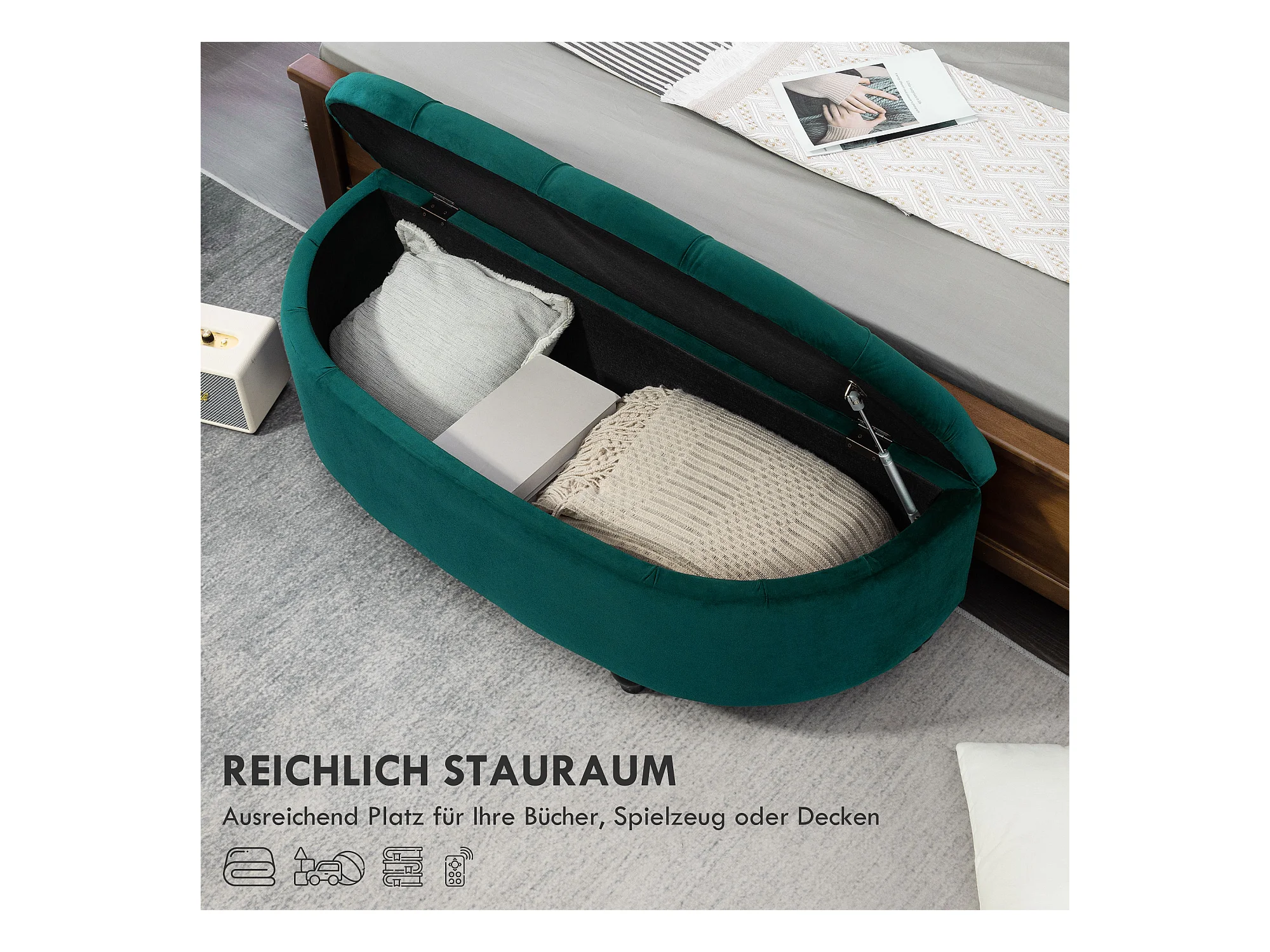 Banco con espacio de almacenamiento y tapa abierta,banco tapizado Velvet Touch,madera de caucho