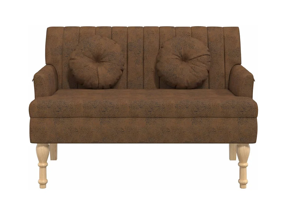 Banco con cojines marrones 113x64,5x75,5 cm piel antelina