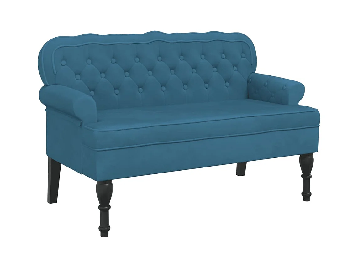 Banco tapizado de lujo, diseño vintage, poliéster y caucho, azul (117x40x58 cm)