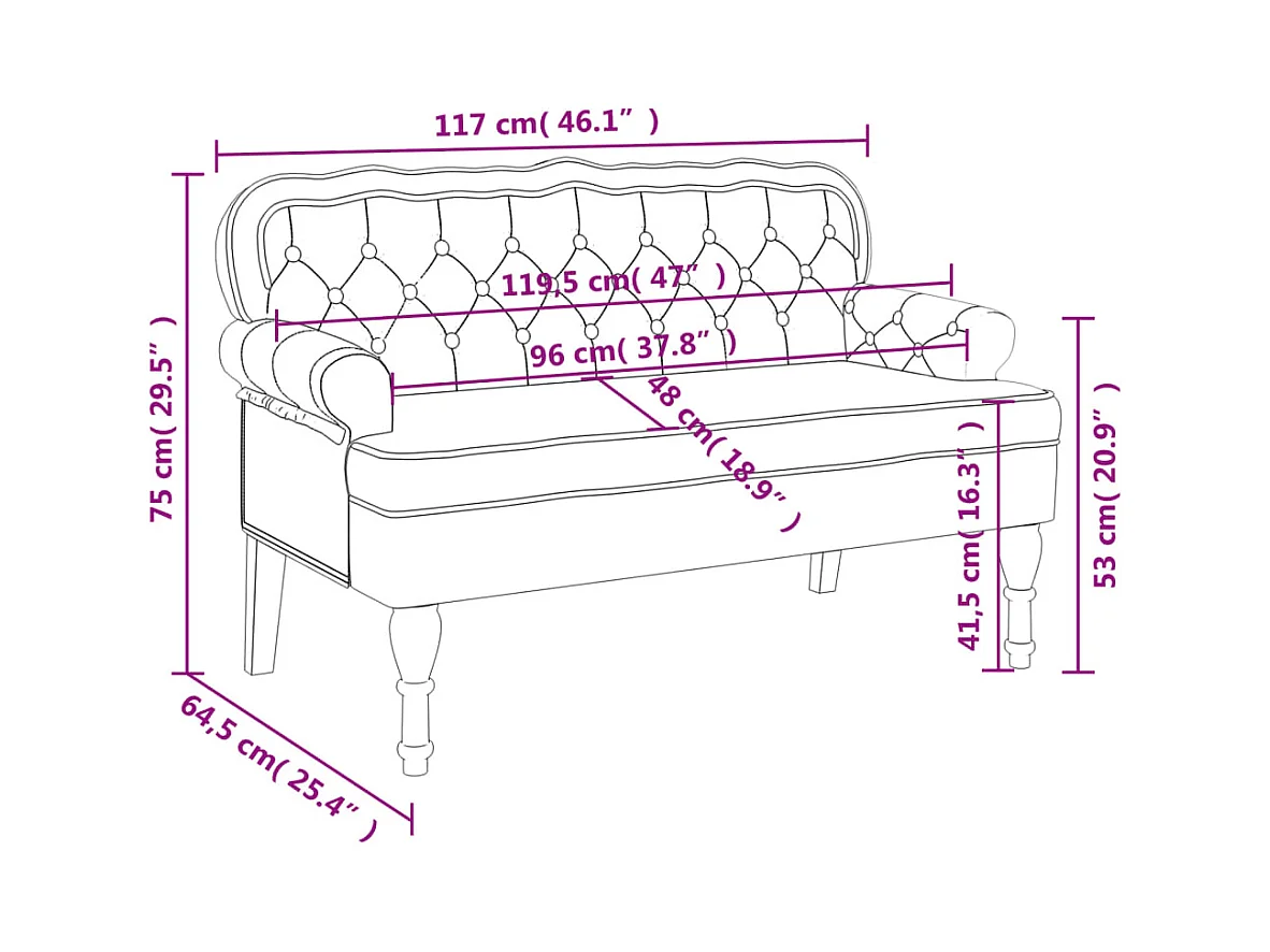 Banco con respaldo azul 119,5x64,5x75 cm terciopelo