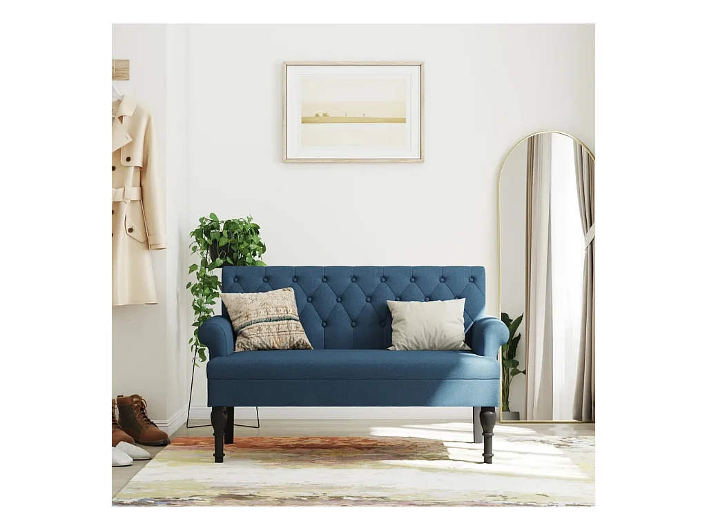 Banco tapizado de lujo, diseño vintage, poliéster y caucho, azul (117x40x58 cm)