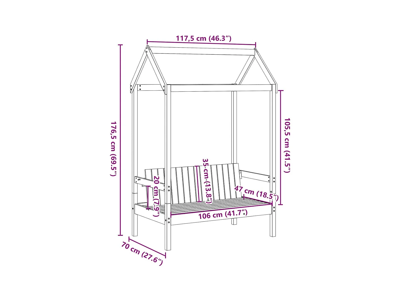 Banco con techo encerado marrón 117,5x70x176,5 cm madera maciza de pino