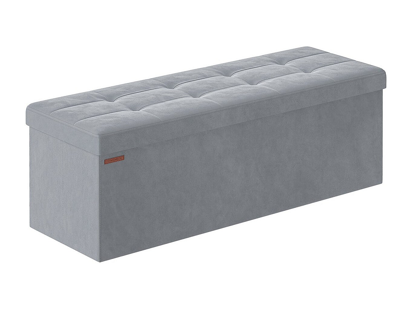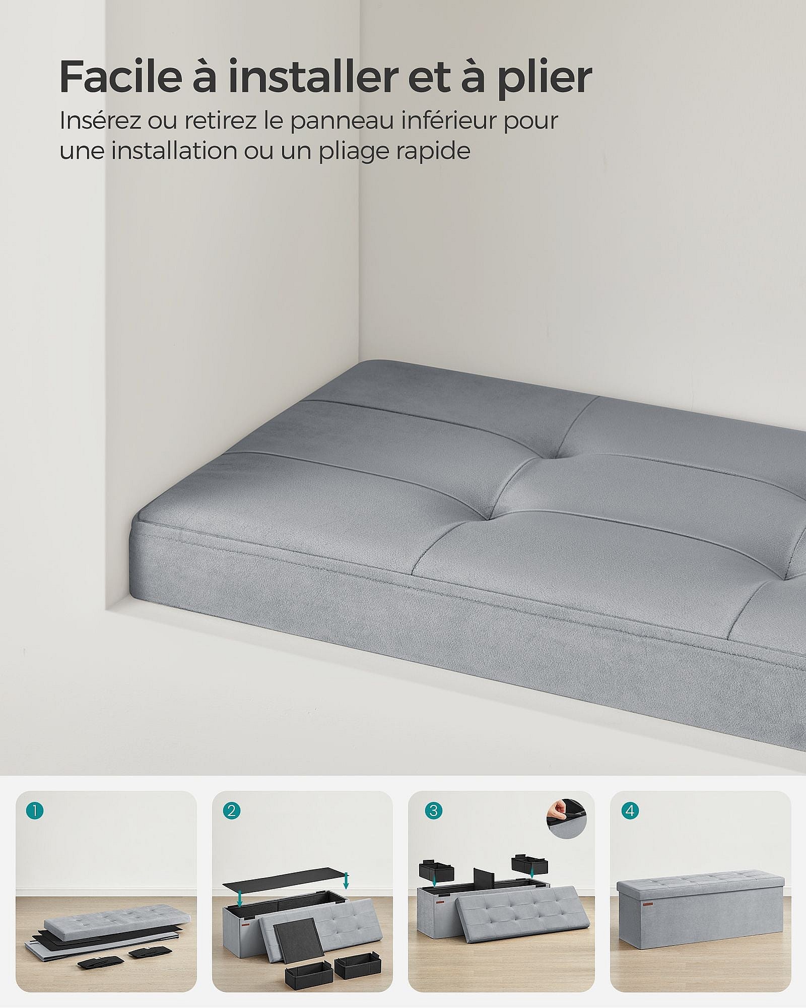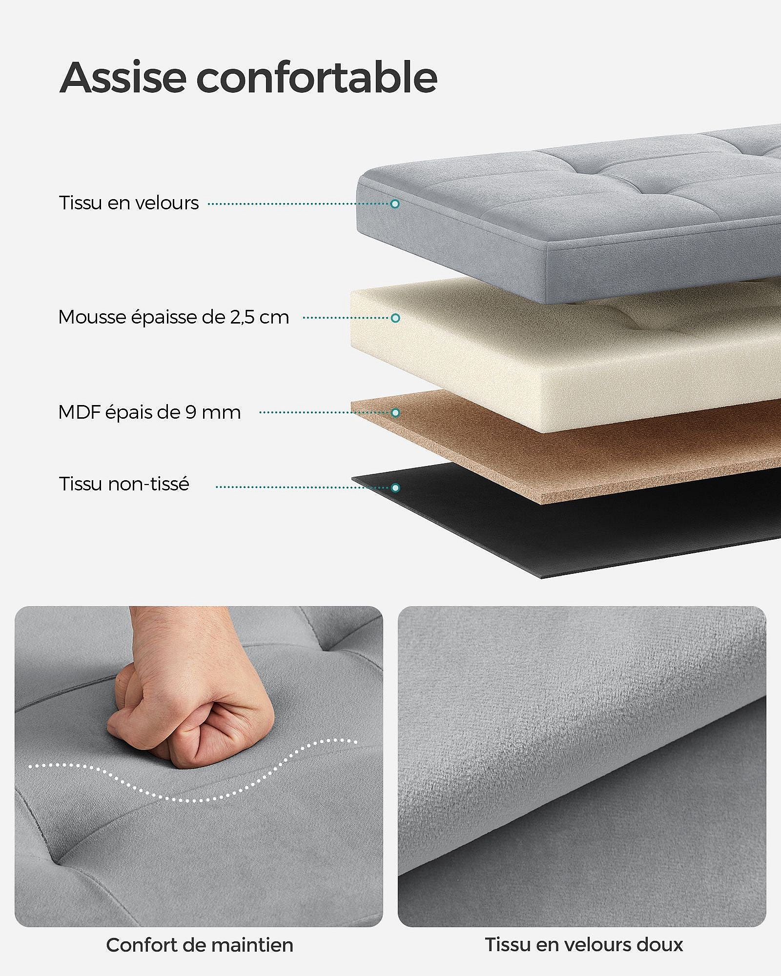 Banco de almacenaje de terciopelo con tapa y 2 compartimentos extraíbles capacidad de carga 300 kg para pasillo salón dormitorio gris 12_0004161