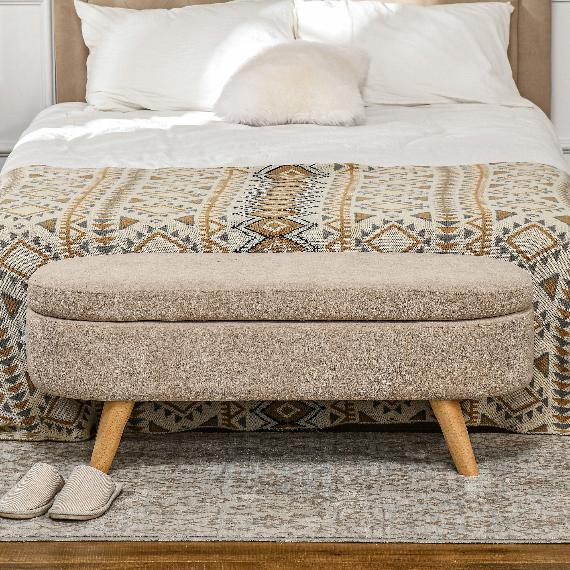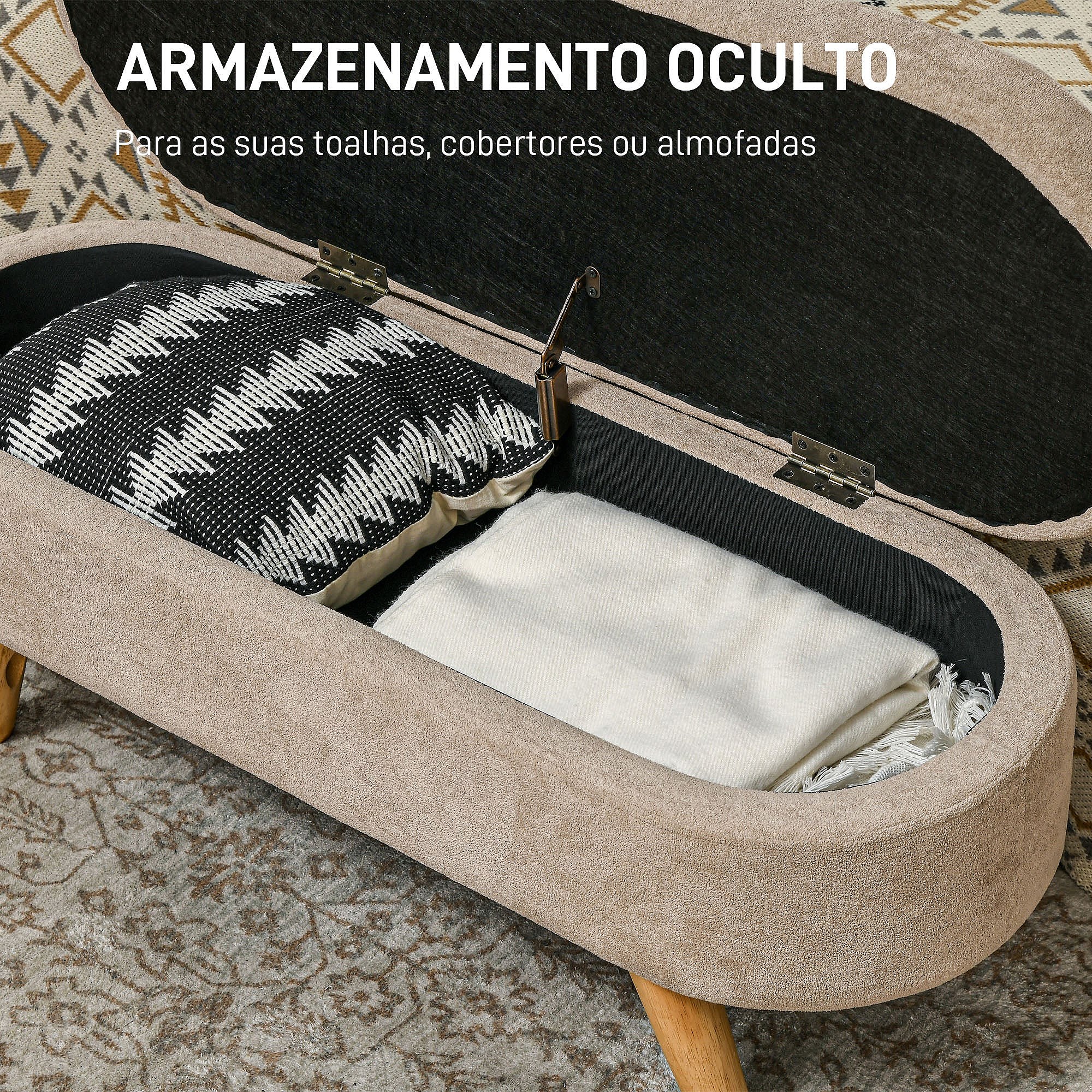 Banco de almacenaje Lavanda Homcom con patas asiento acolchado beige 43x110x40 cm